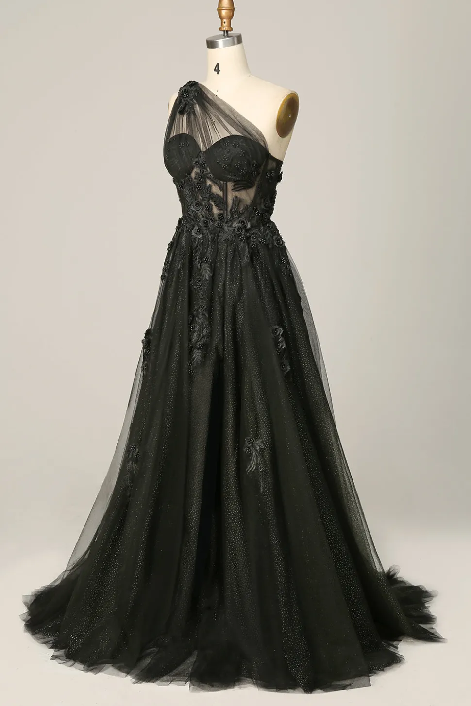 A Line Off the Shoulder Royal Blue Prom Dress with Split Front