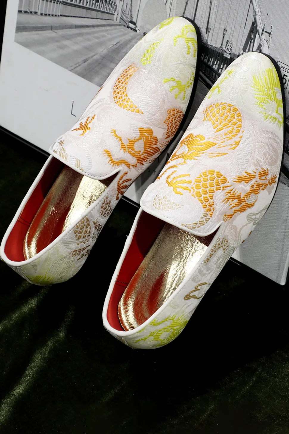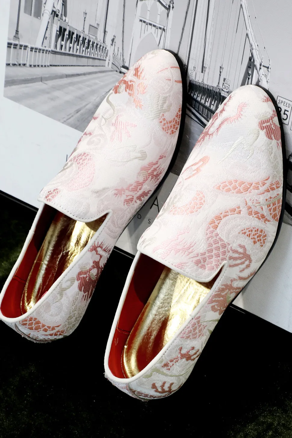 Pink Jacquard Slip-On Men’s Shoes