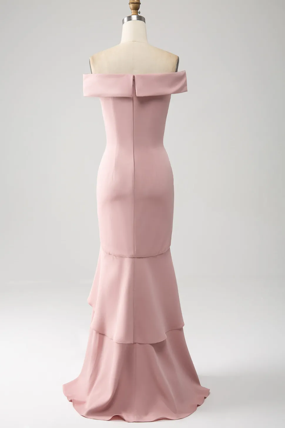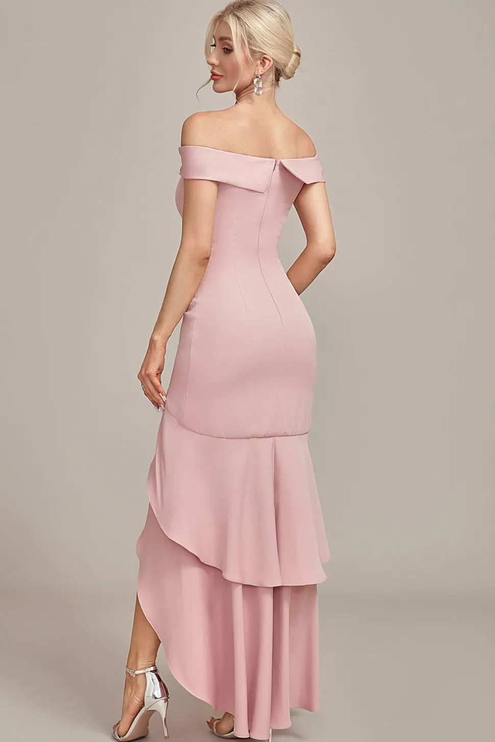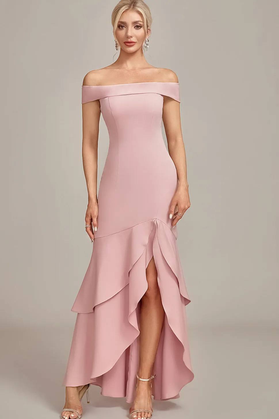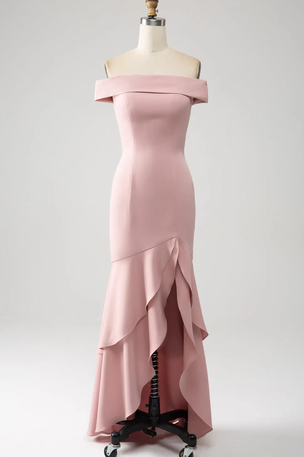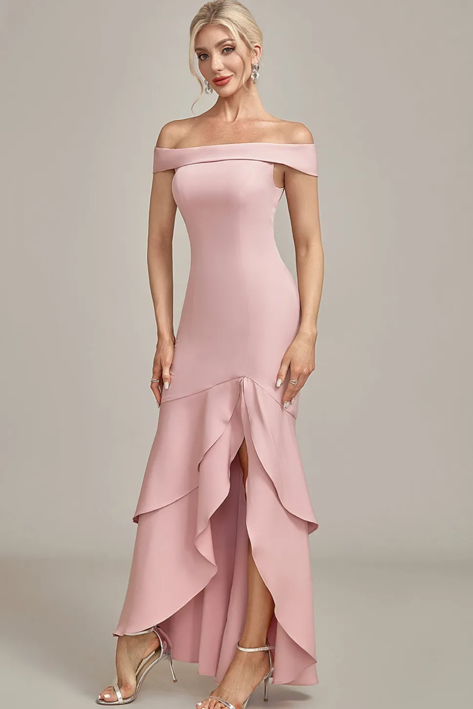 A Line Off the Shoulder Royal Blue Prom Dress with Split Front