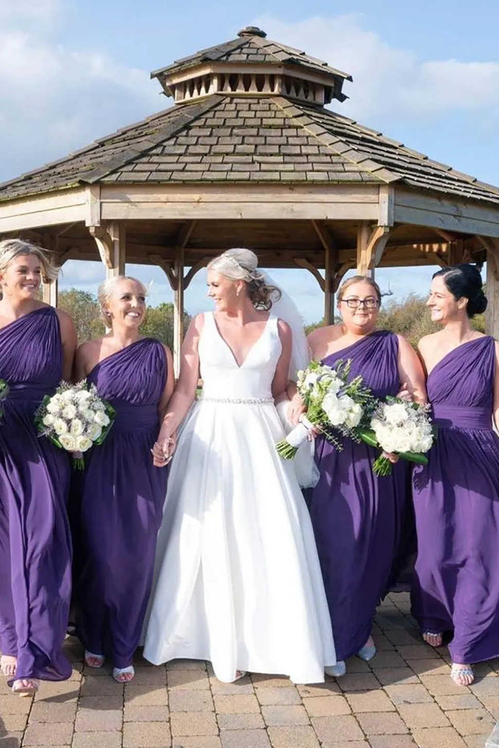 Purple Chiffon One Shoulder Tunic A-Line Long Bridesmaid Dress