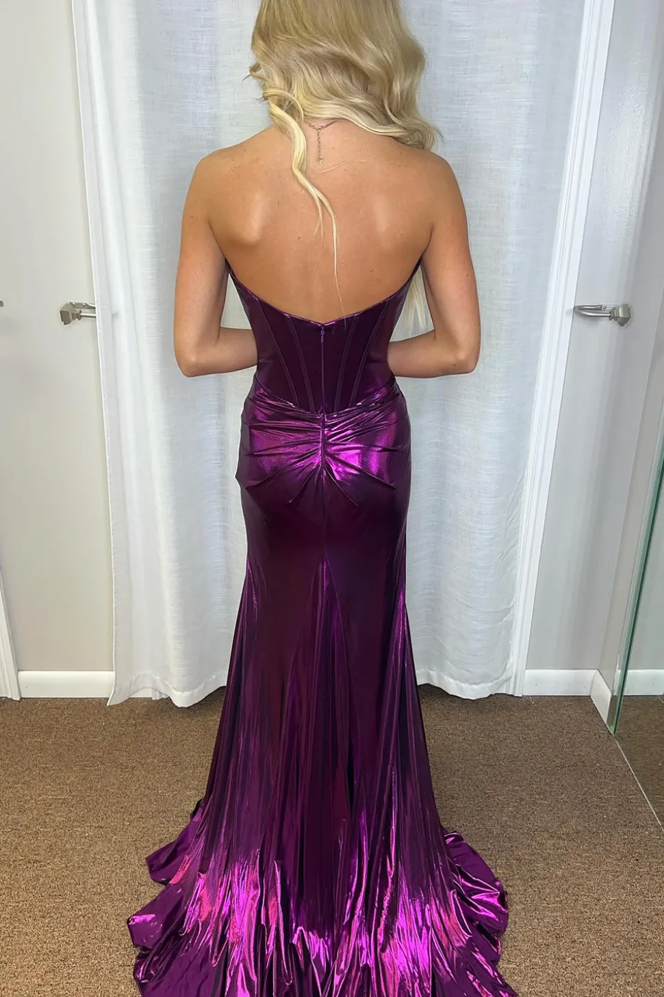 A Line Off the Shoulder Royal Blue Prom Dress with Split Front