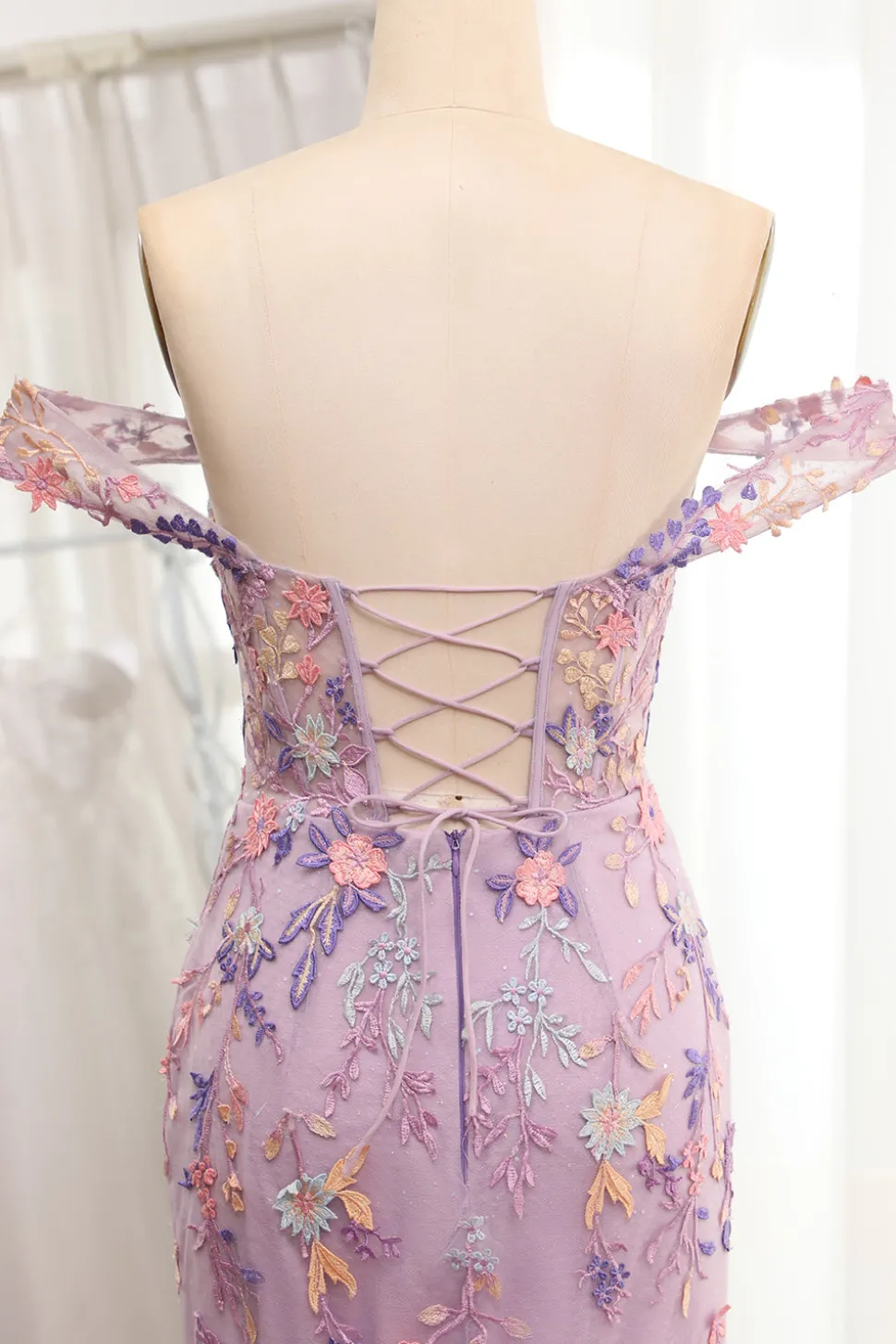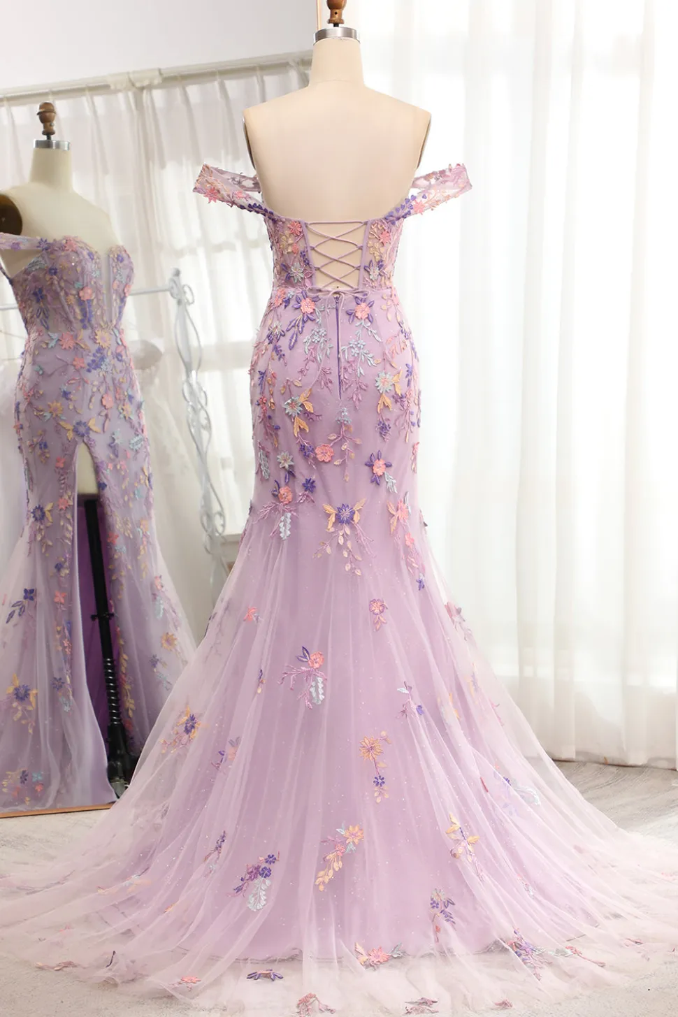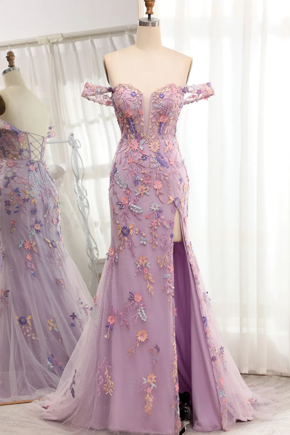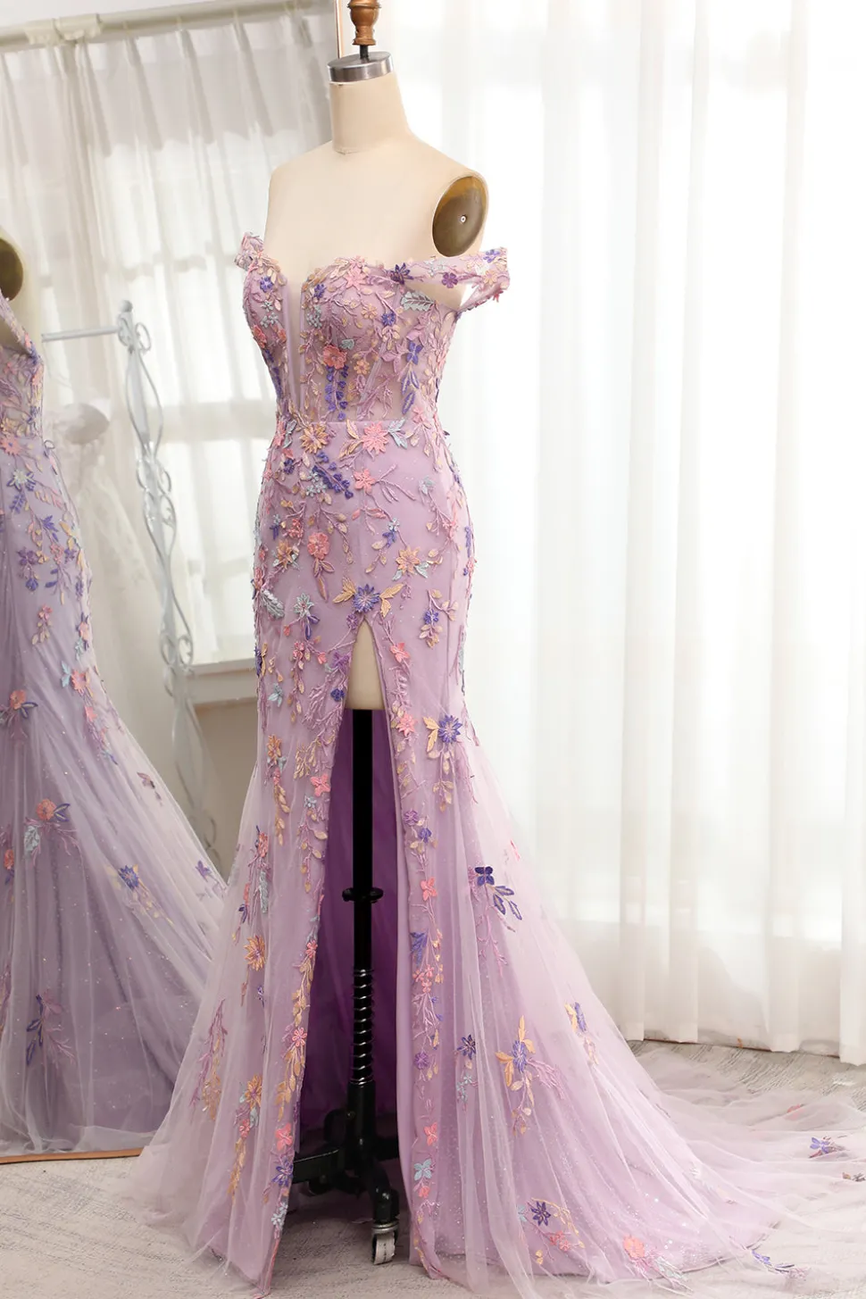 A Line Off the Shoulder Royal Blue Prom Dress with Split Front