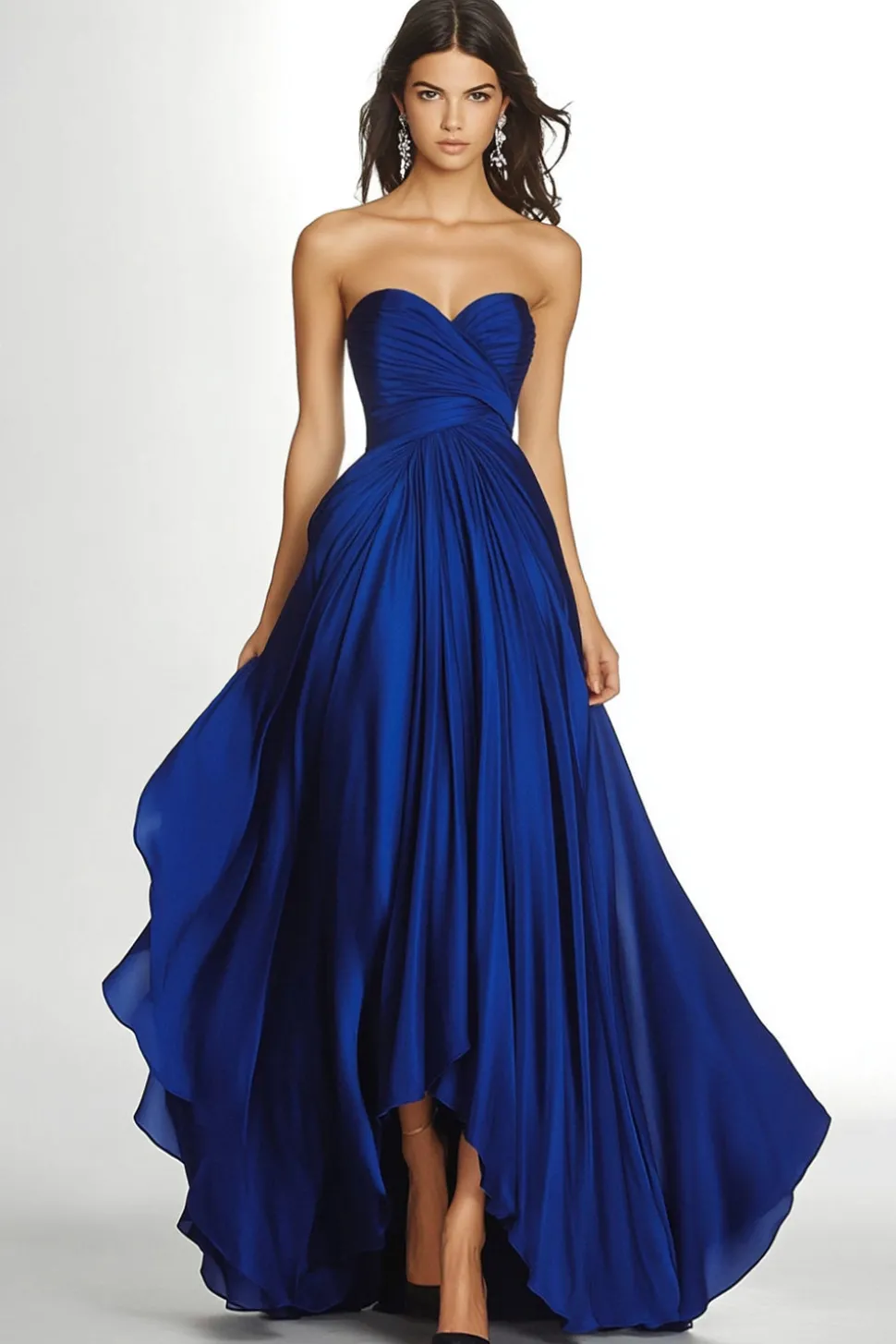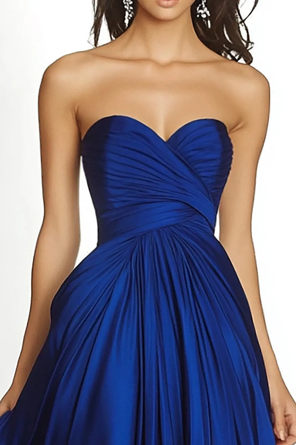 A Line Off the Shoulder Royal Blue Prom Dress with Split Front