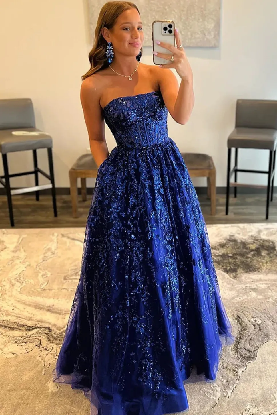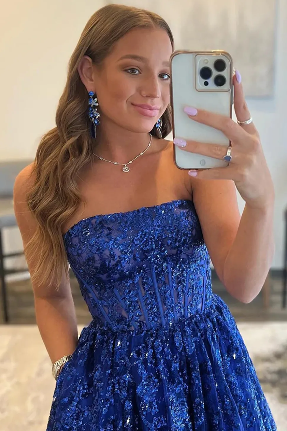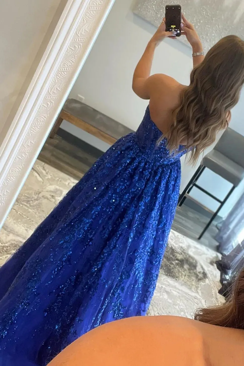 A Line Off the Shoulder Royal Blue Prom Dress with Split Front