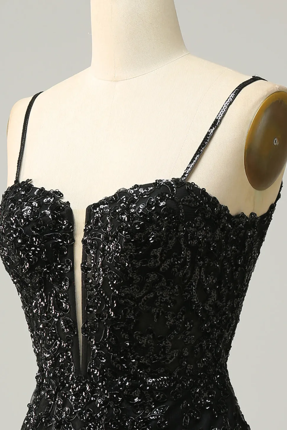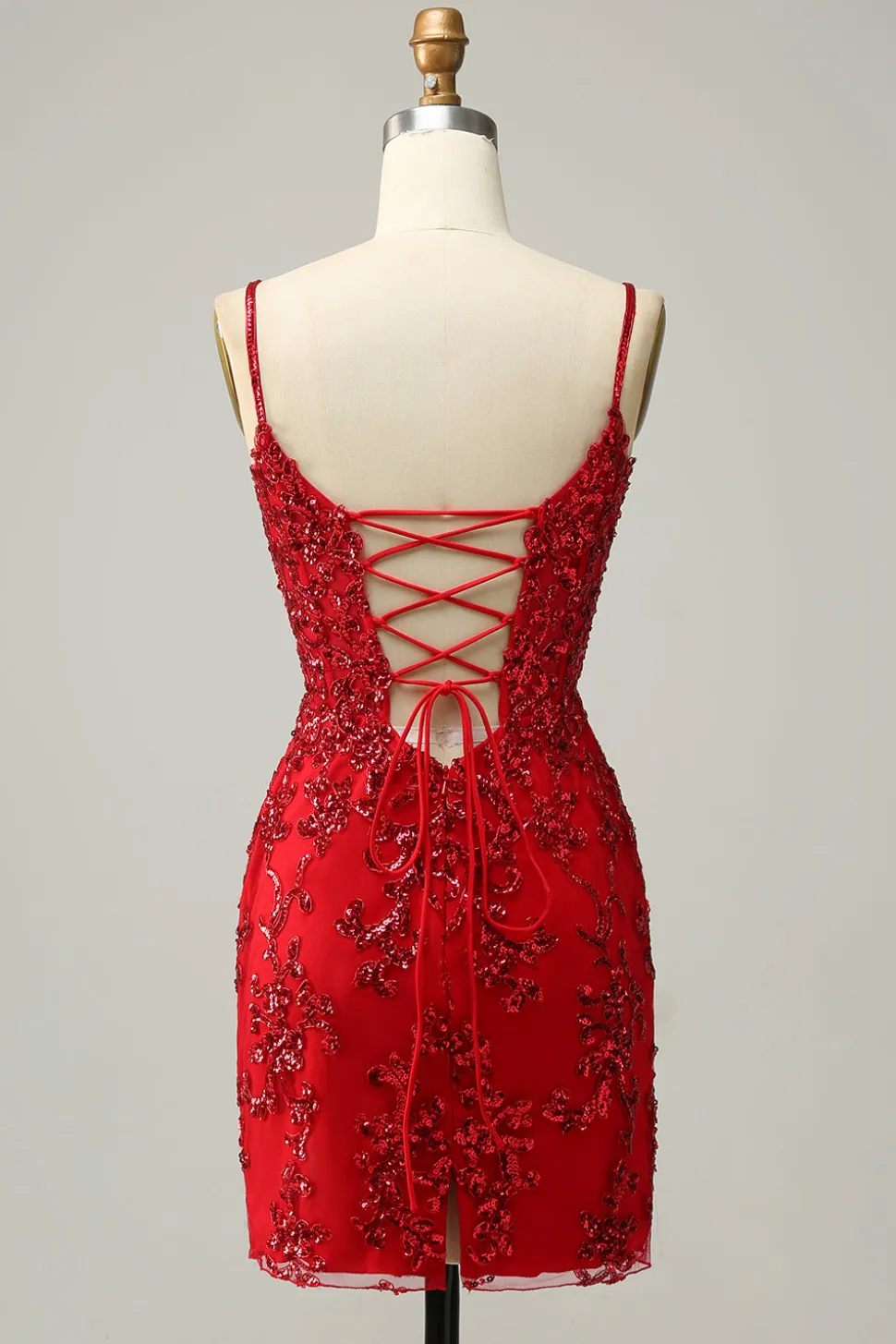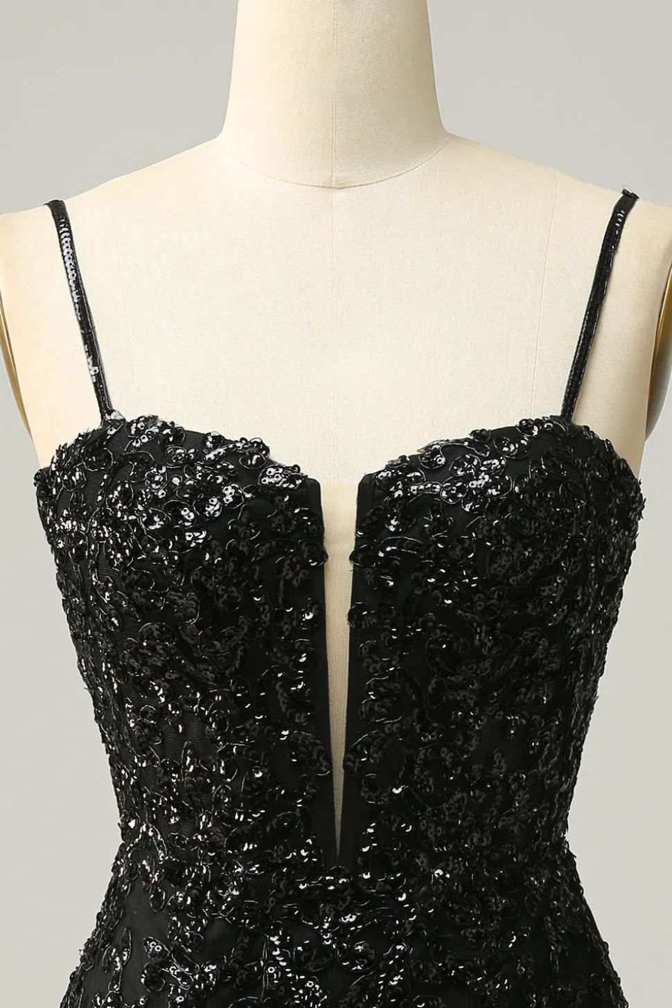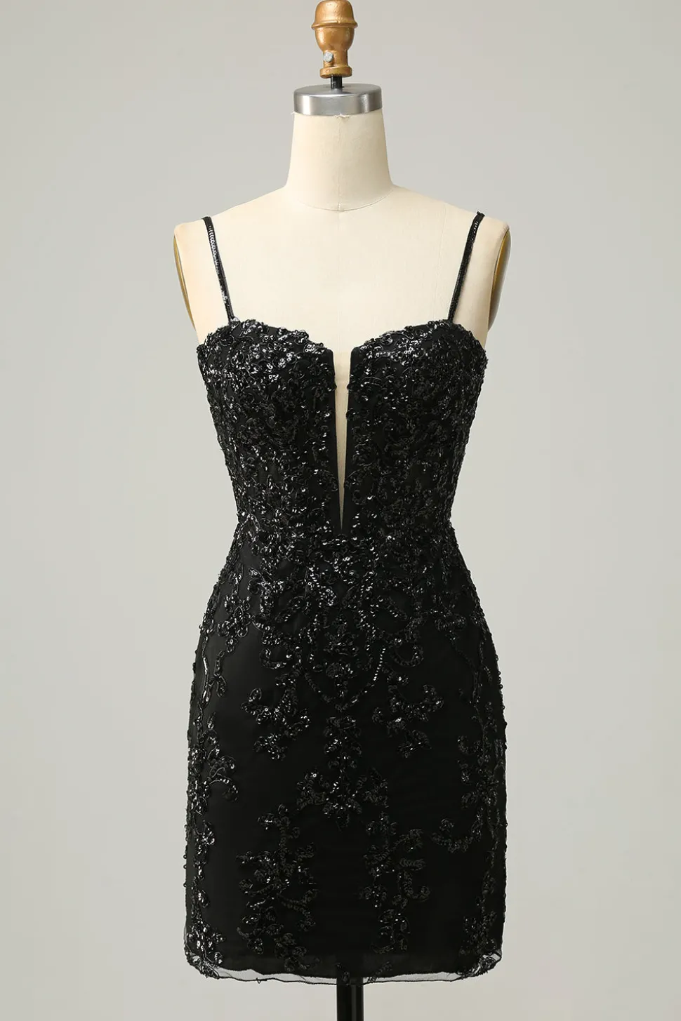 Sheath Spaghetti Straps Black Sequins Short Homecoming Dress with Criss Cross Back