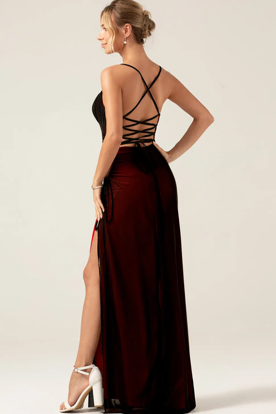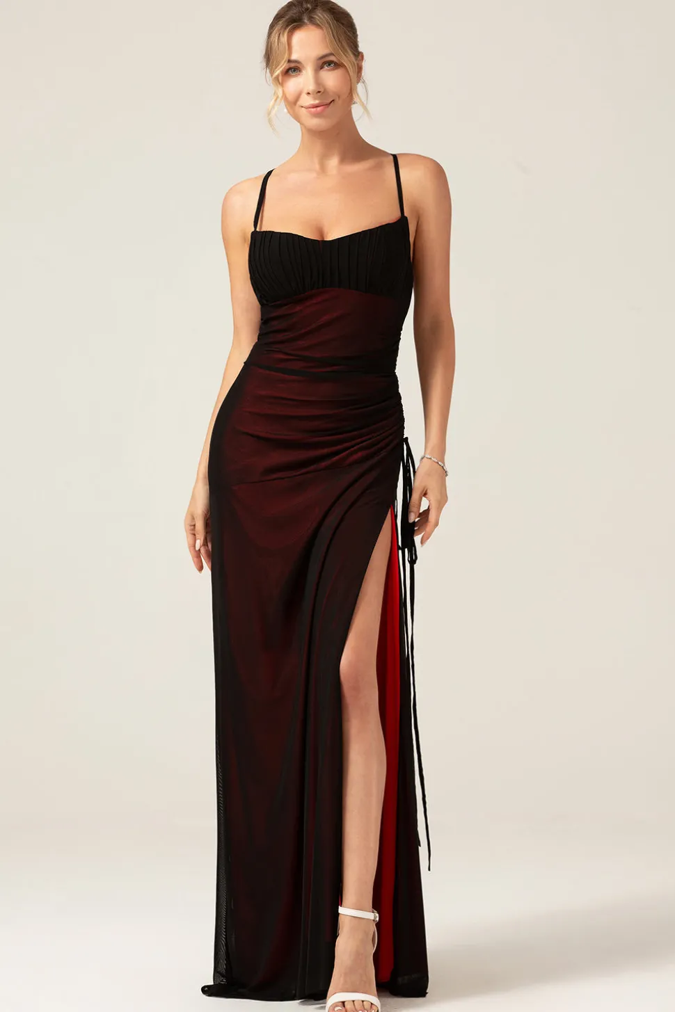 Sheath Spaghetti Straps Floor Length Black Red Bridesmaid Dress