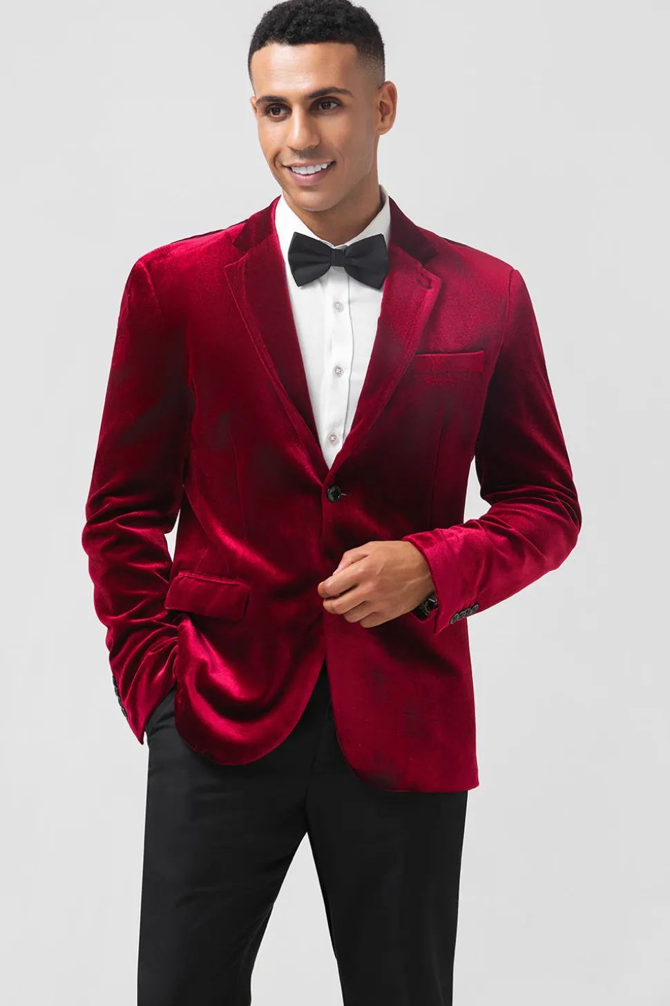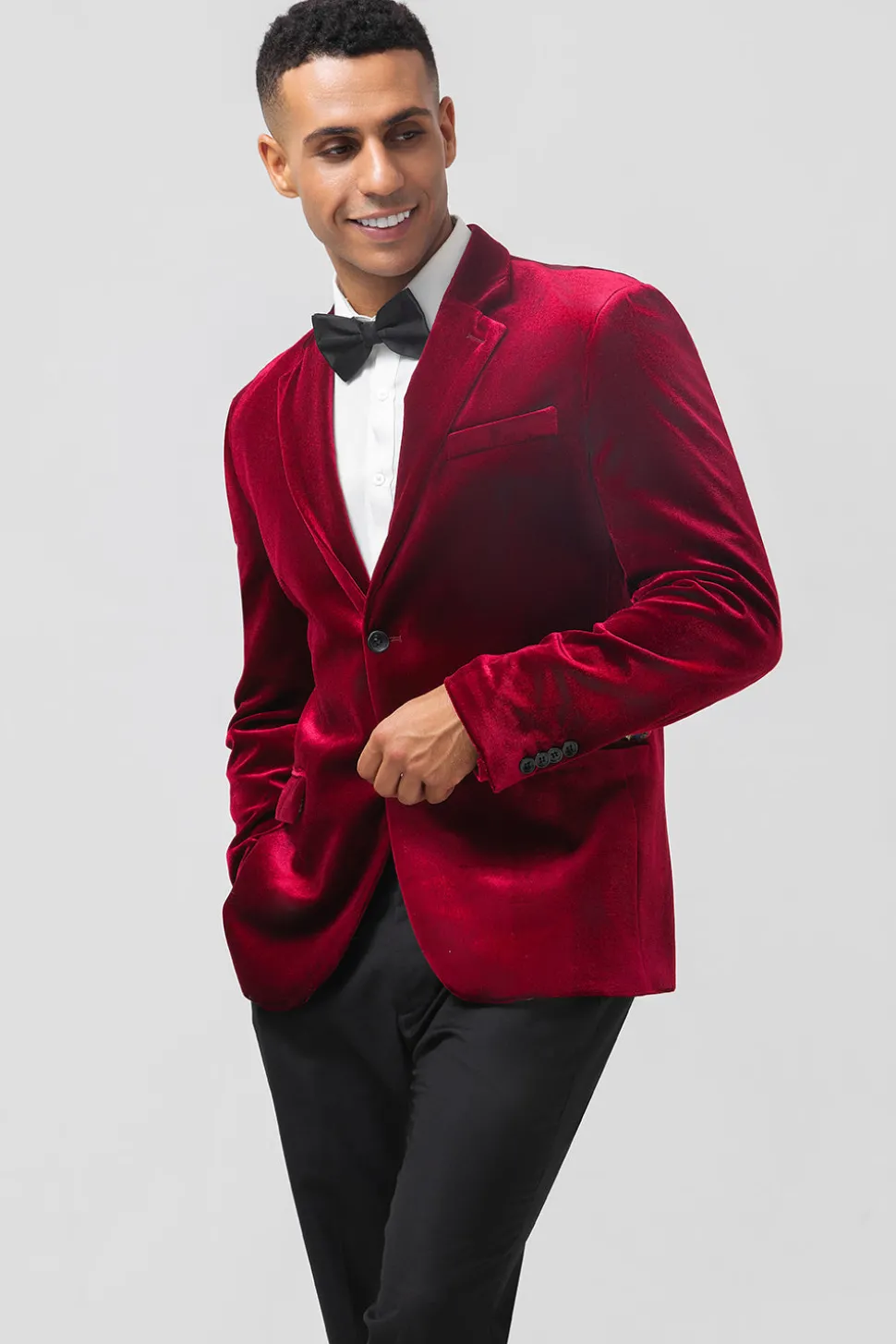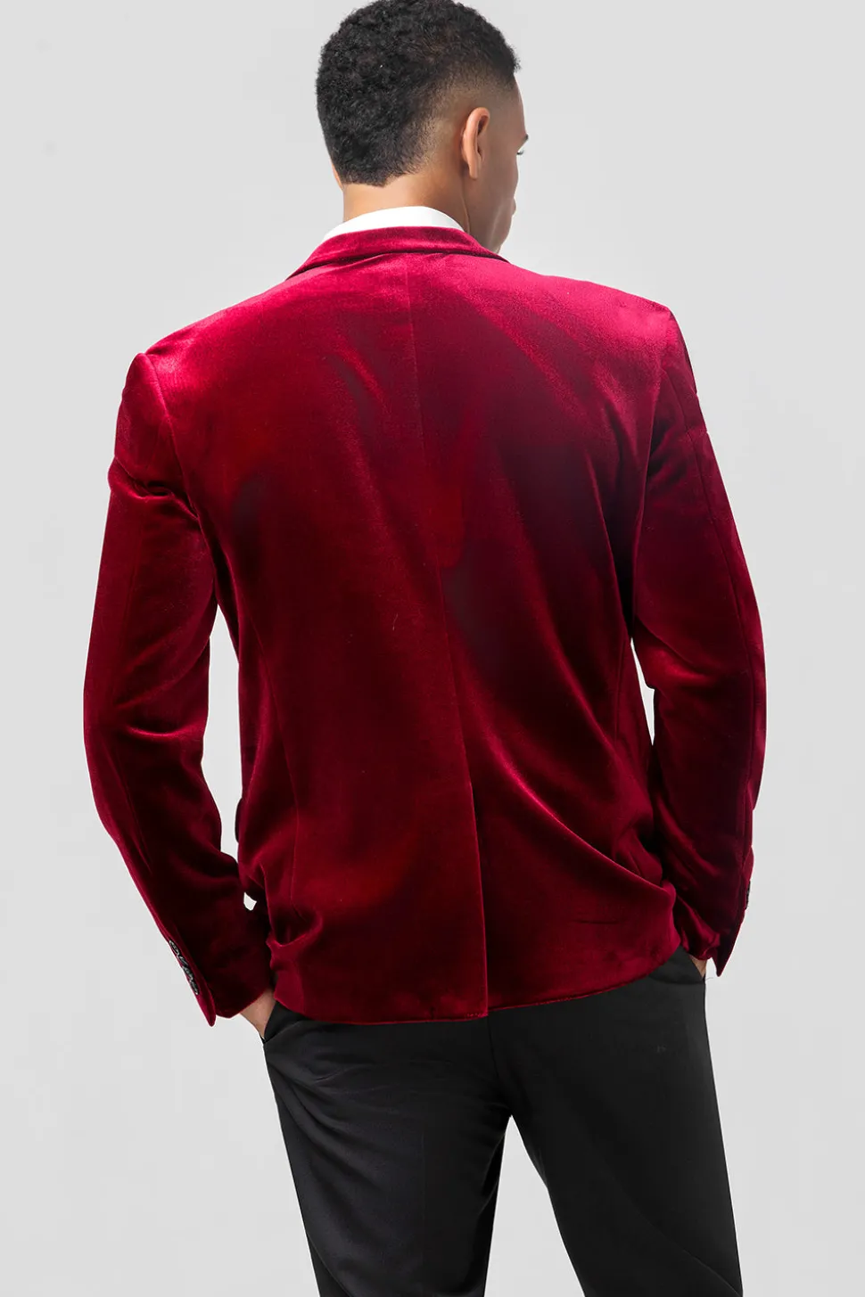 Single Breasted Burgundy Velvet Men’s Blazer
