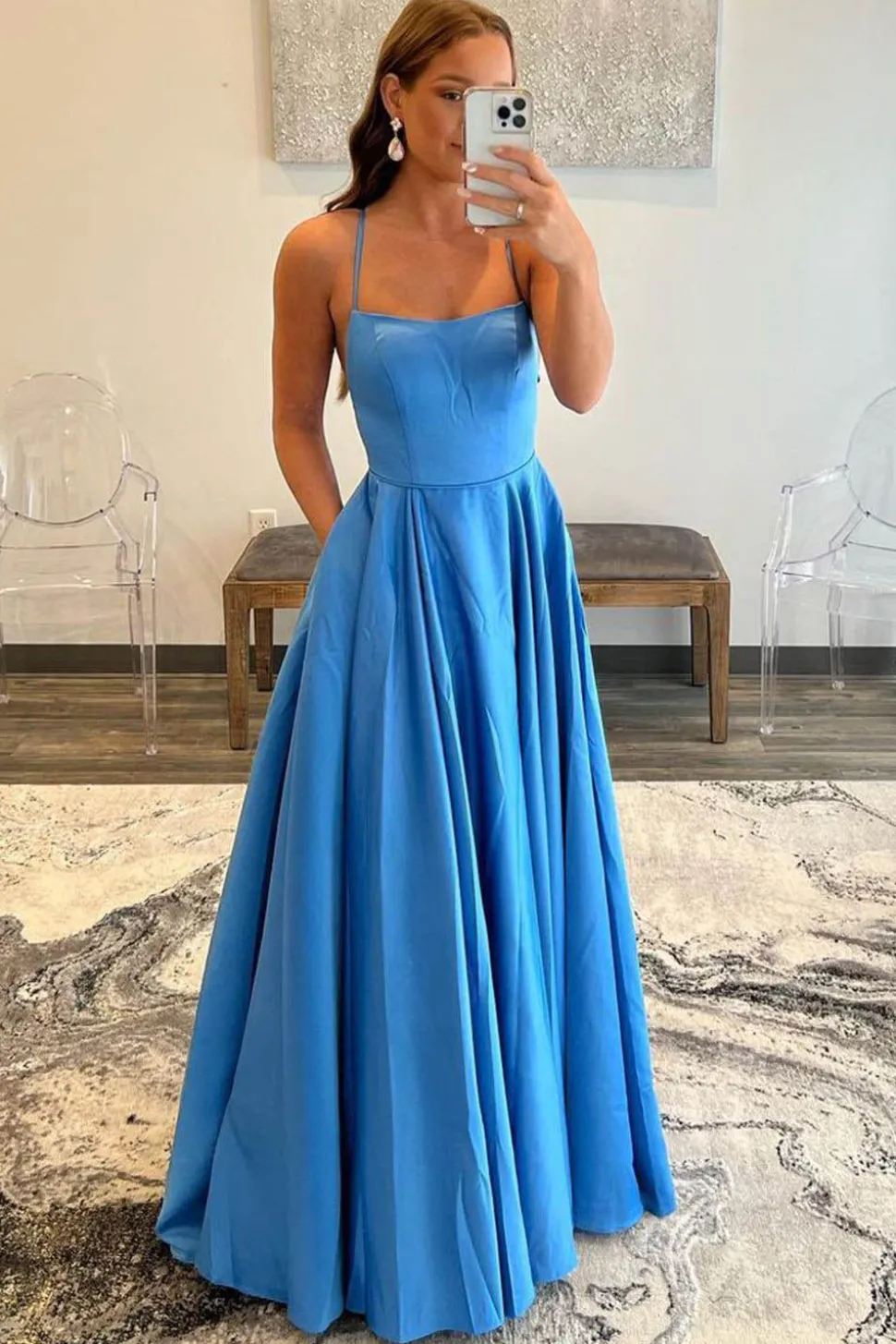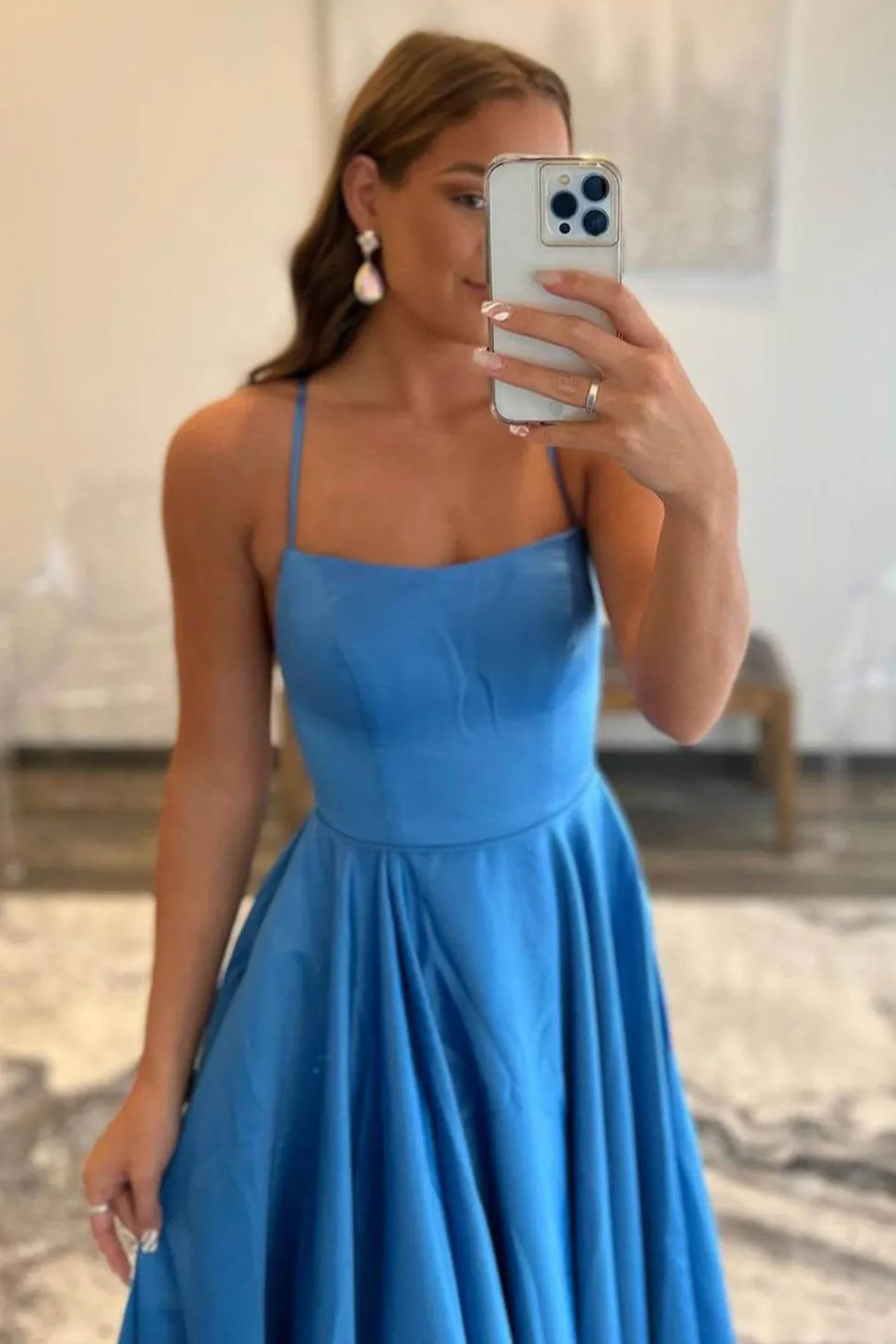 A Line Off the Shoulder Royal Blue Prom Dress with Split Front