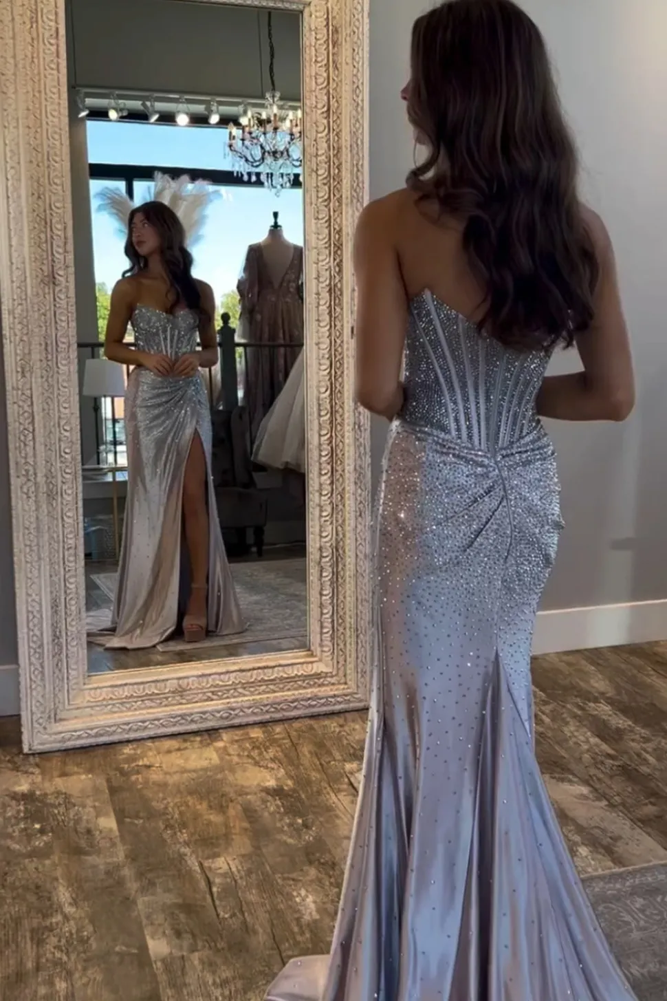 A Line Off the Shoulder Royal Blue Prom Dress with Split Front