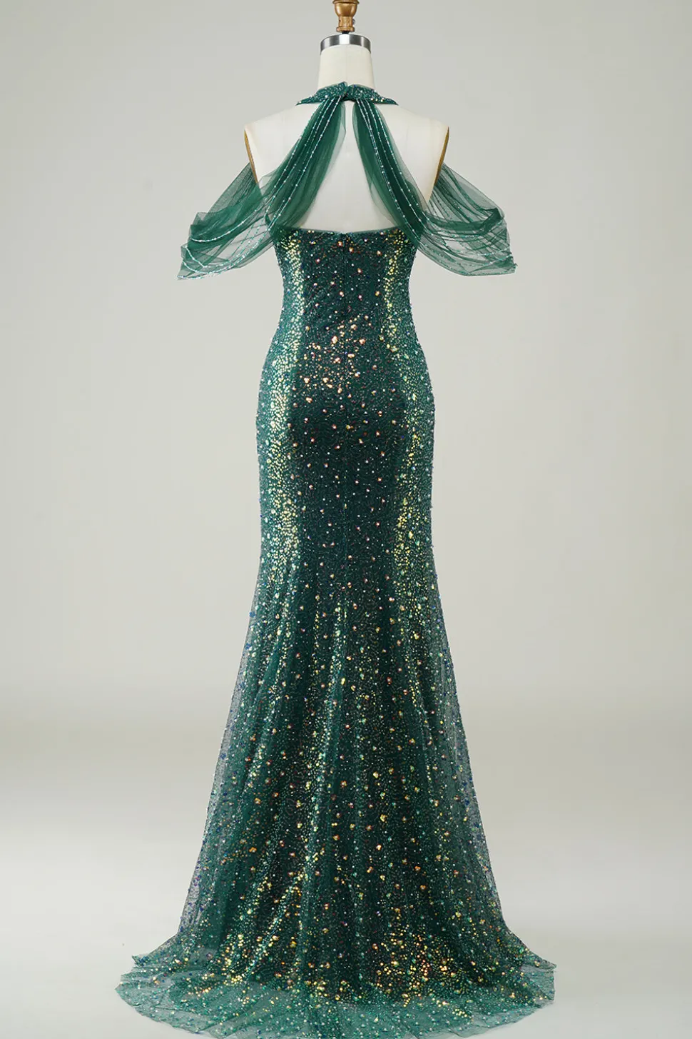 A Line Off the Shoulder Royal Blue Prom Dress with Split Front
