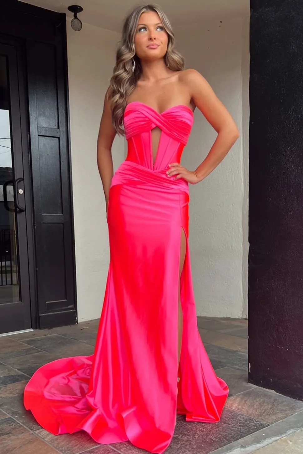 A Line Off the Shoulder Royal Blue Prom Dress with Split Front