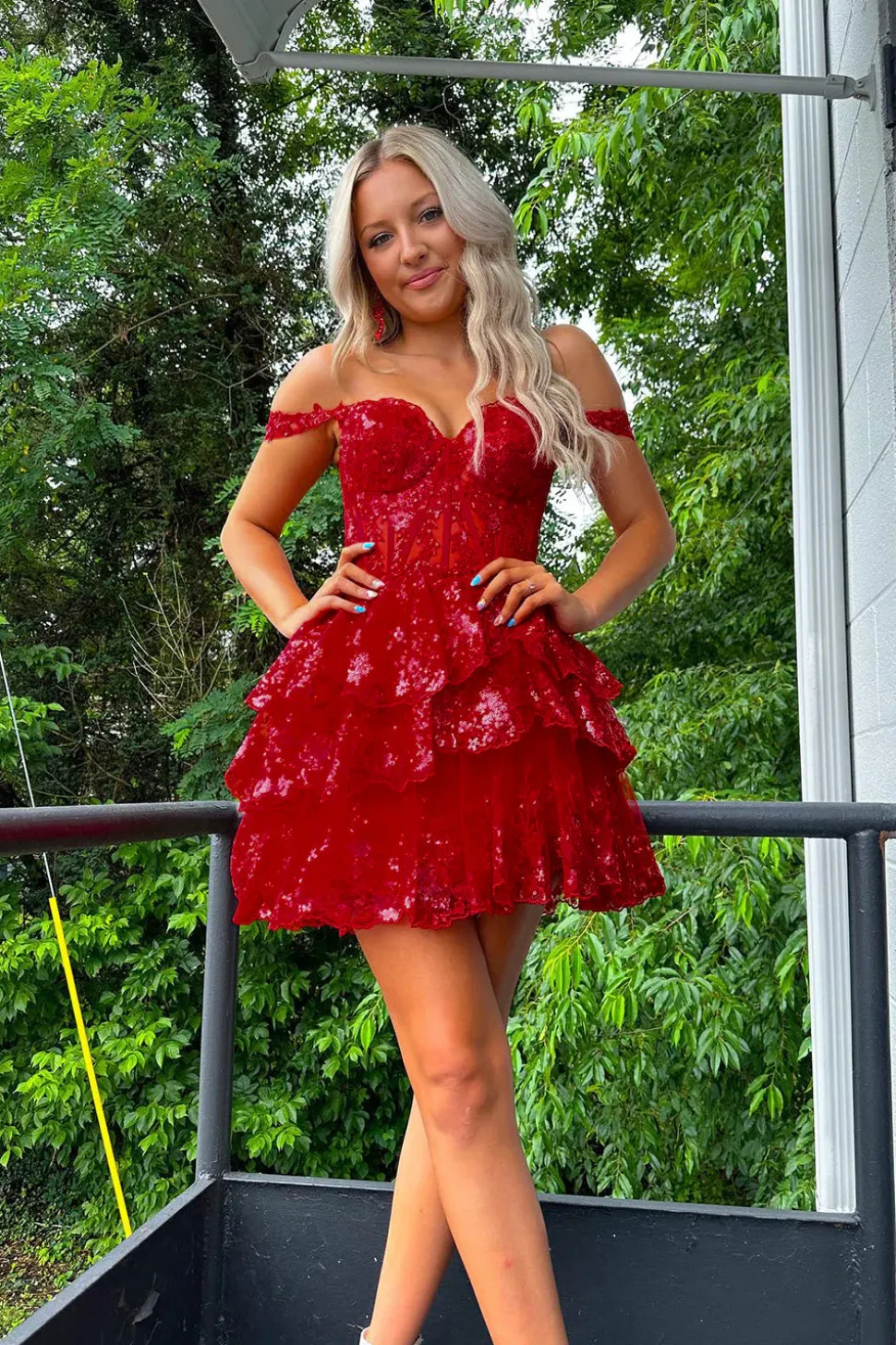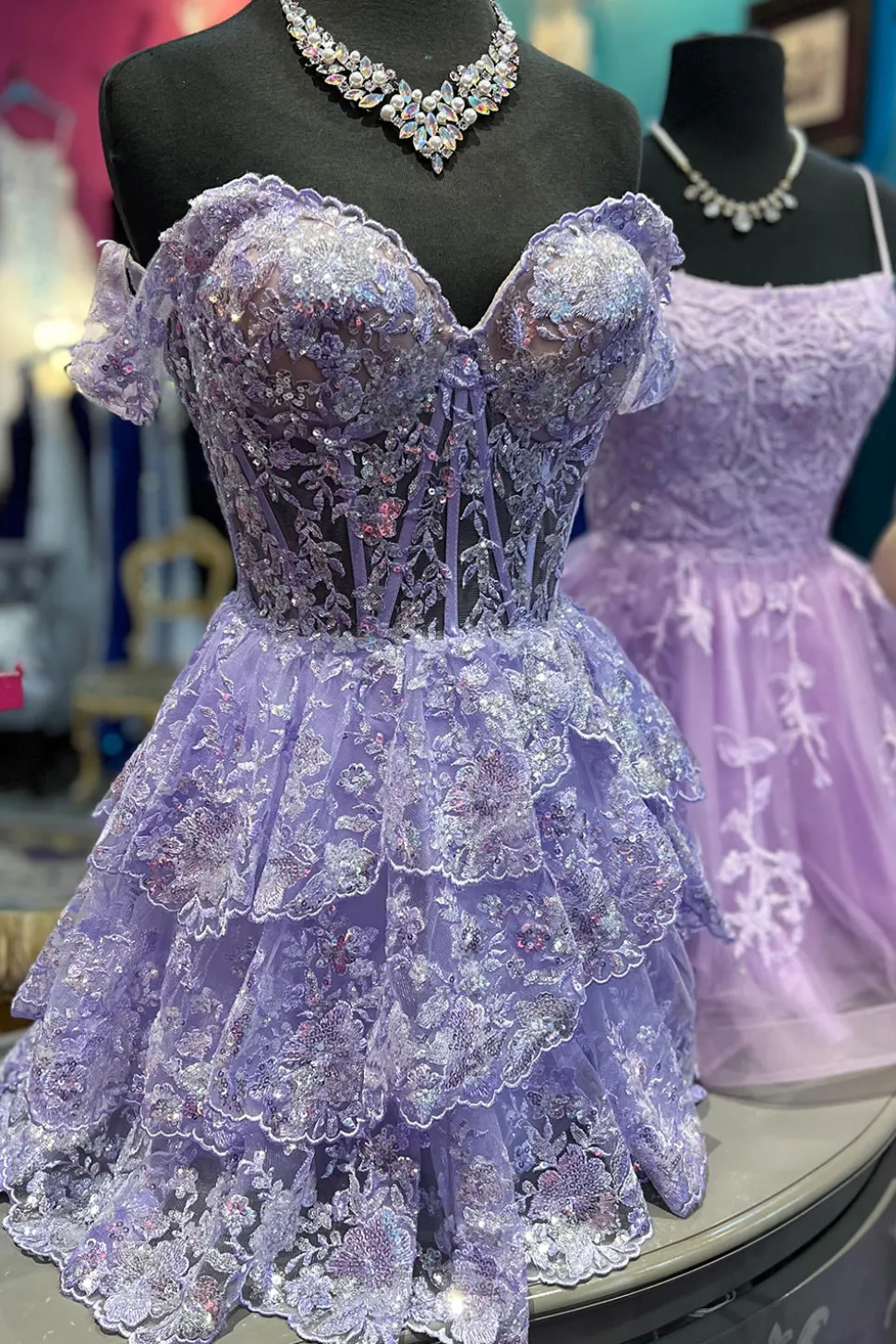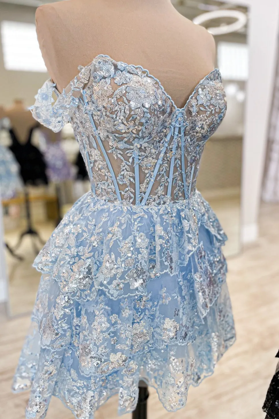 Sparkly Navy Corset Tiered Lace A-Line Short Graduation Dress
