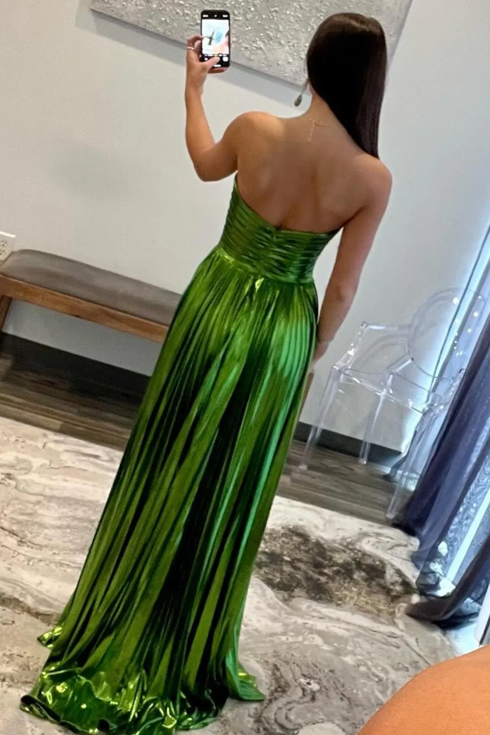 A Line Off the Shoulder Royal Blue Prom Dress with Split Front