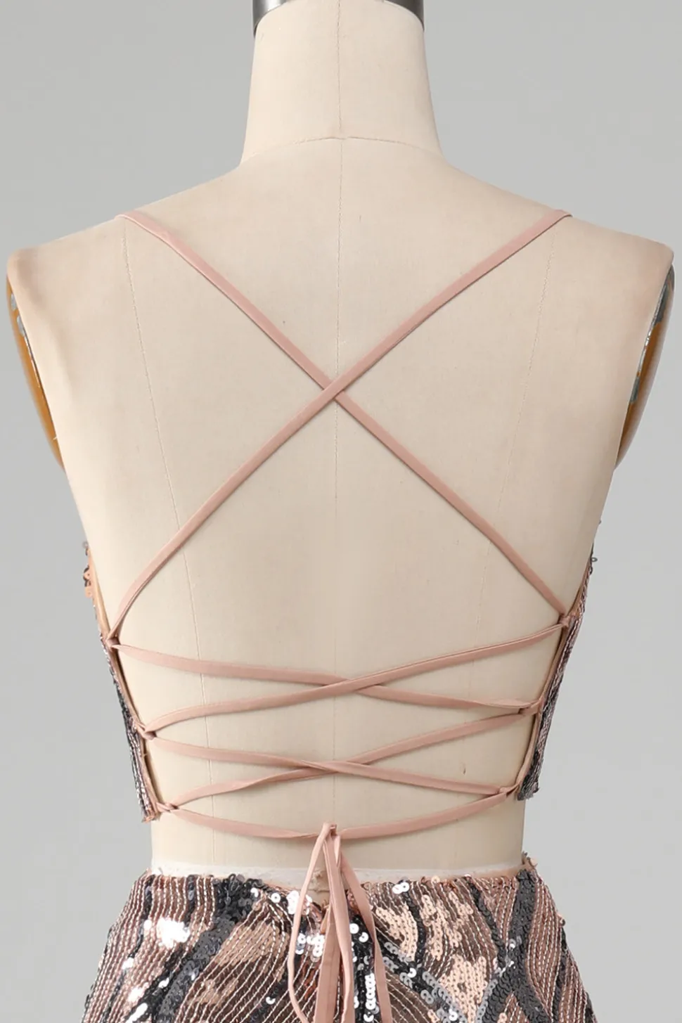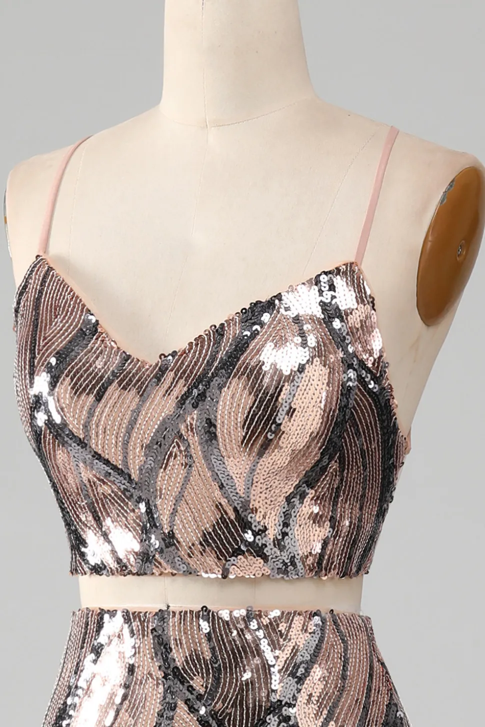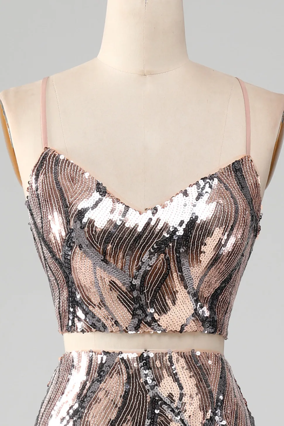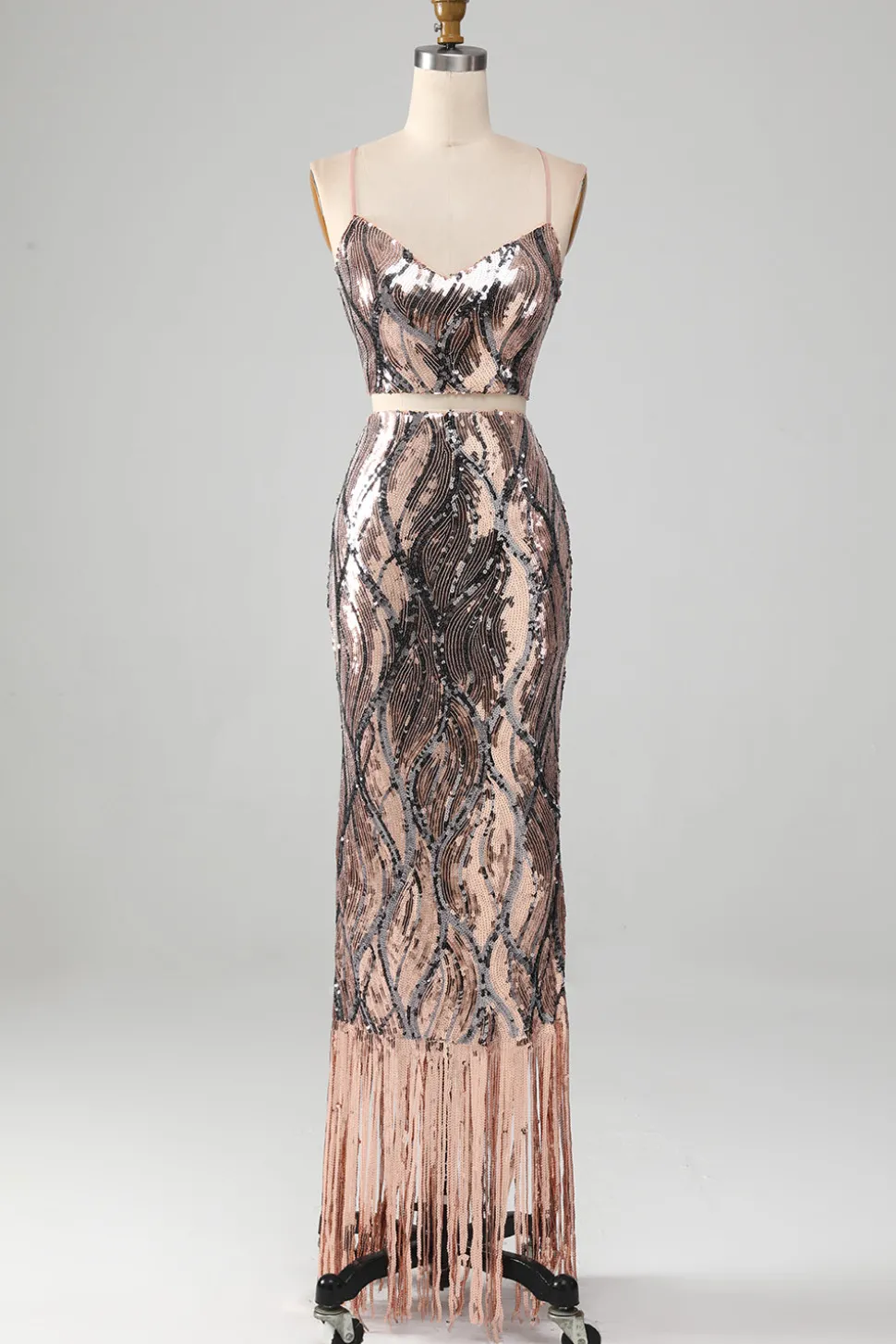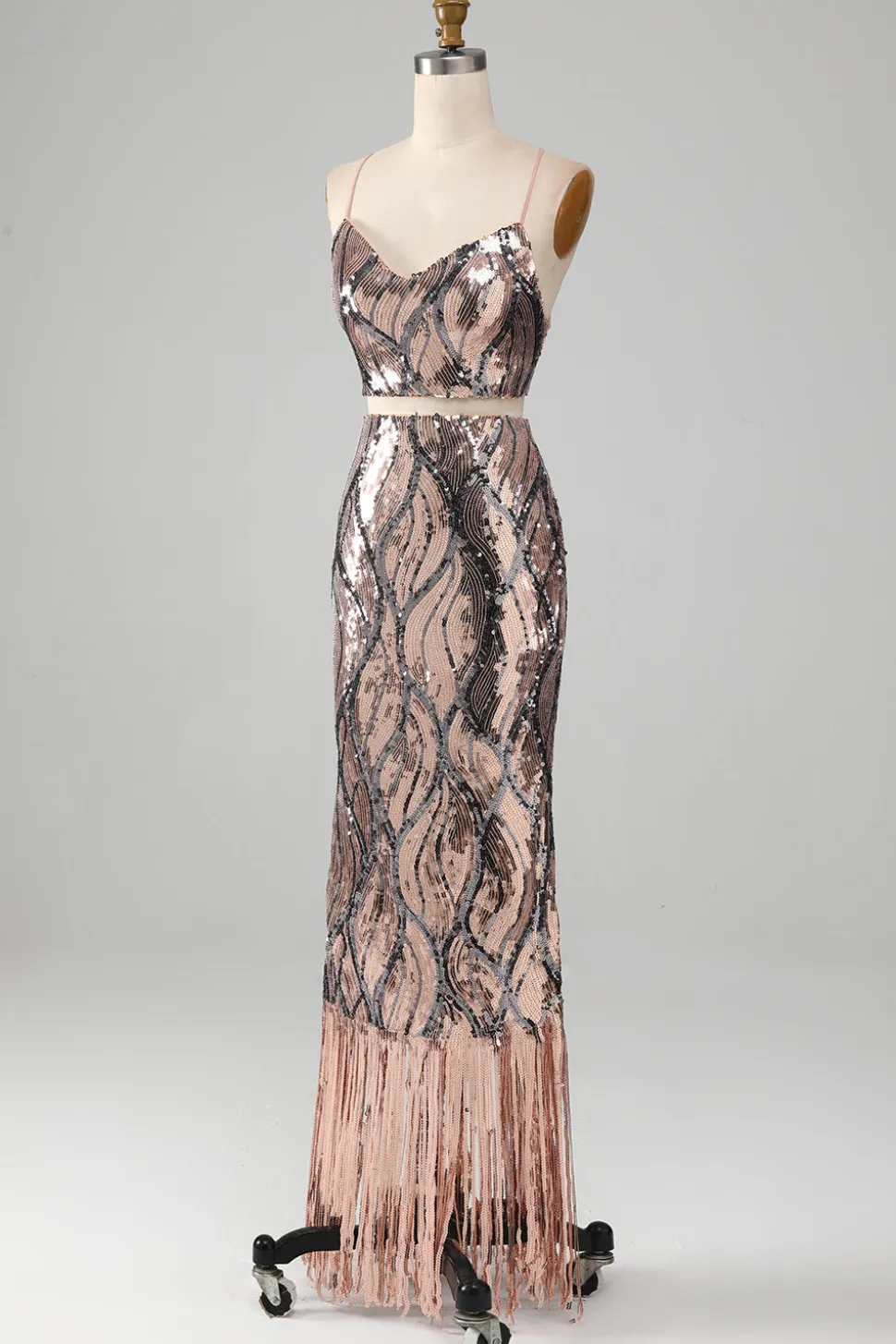Sparkly Two-piece Sheath Prom Dress with Fringes