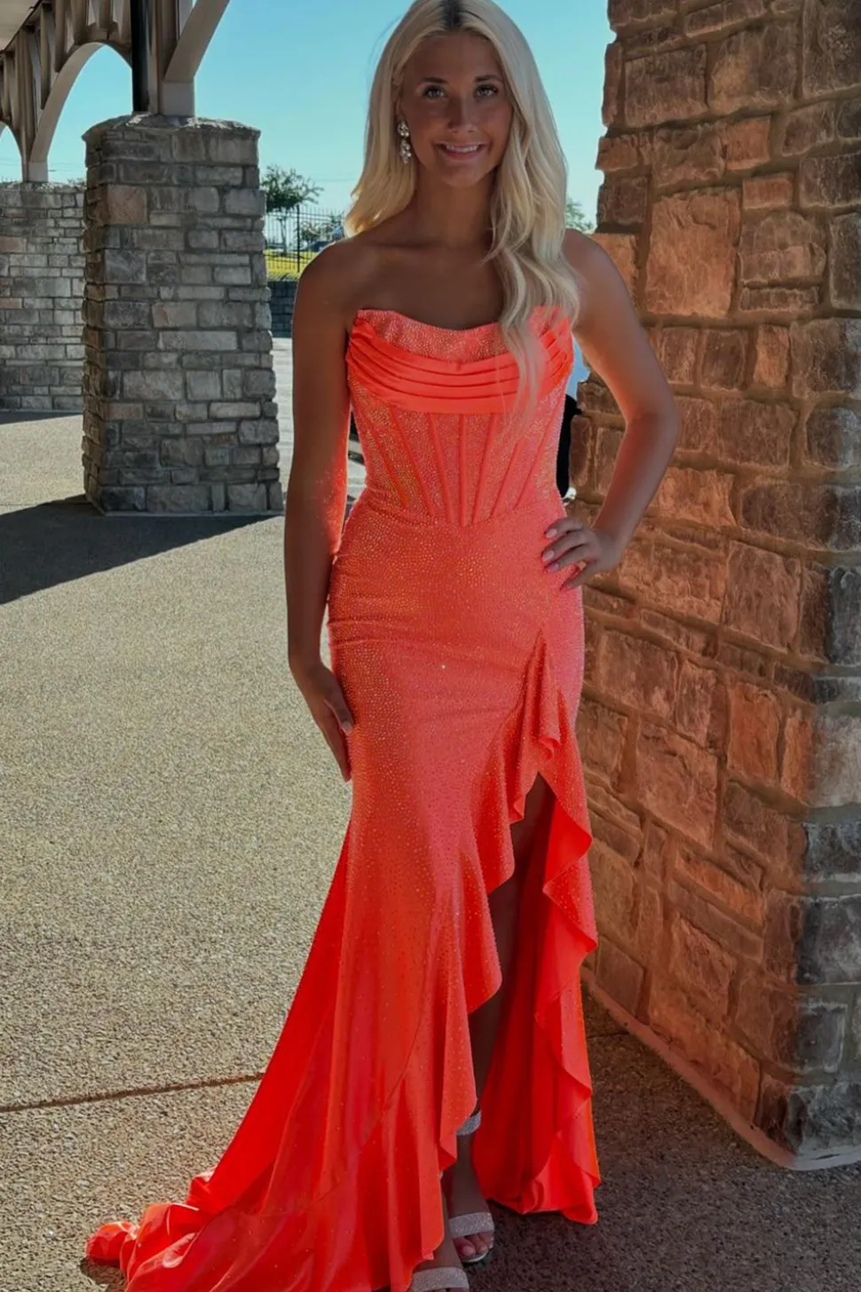 A Line Off the Shoulder Royal Blue Prom Dress with Split Front