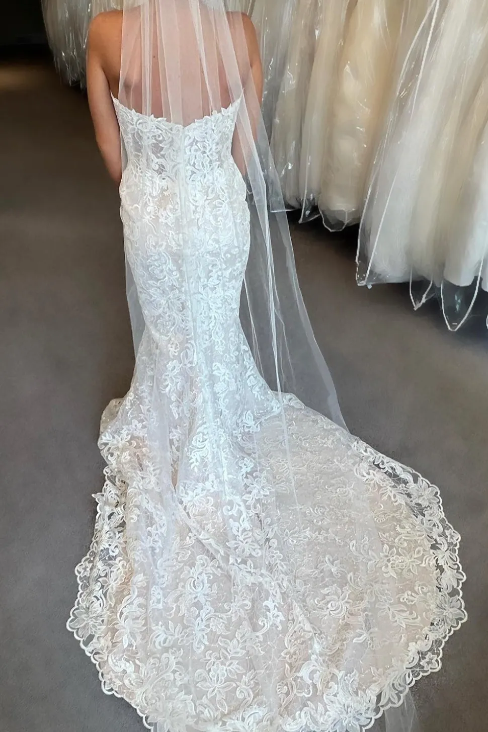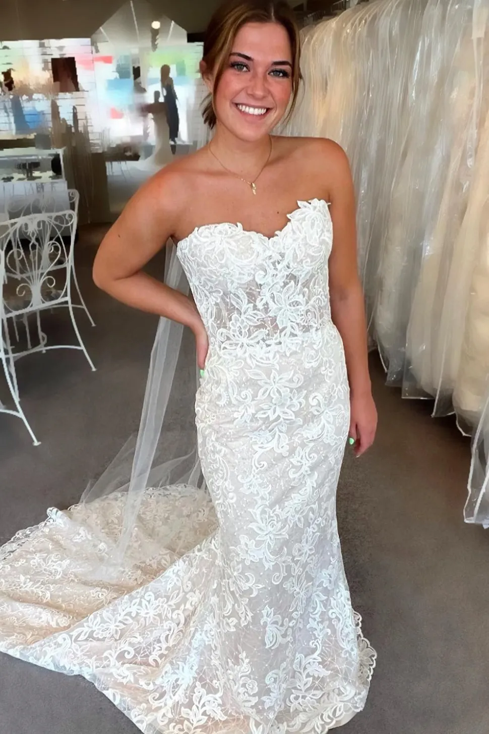 Sweetheart Ivory Corset Long Wedding Dress with Appliques