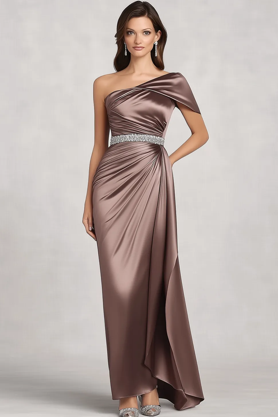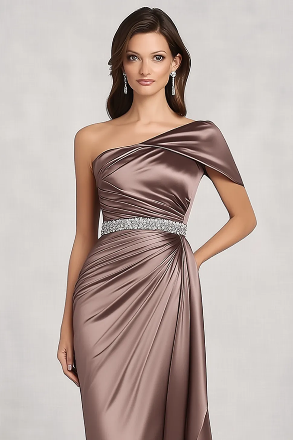Taupe Satin One Shoulder Mother of Bride Dress
