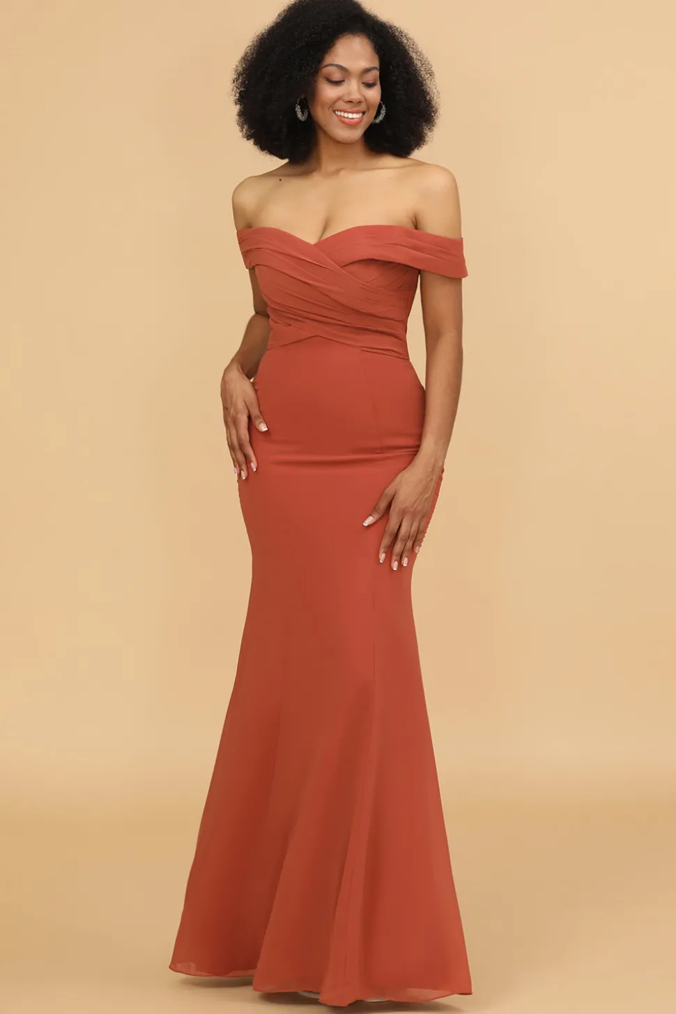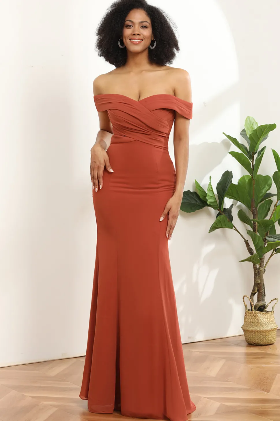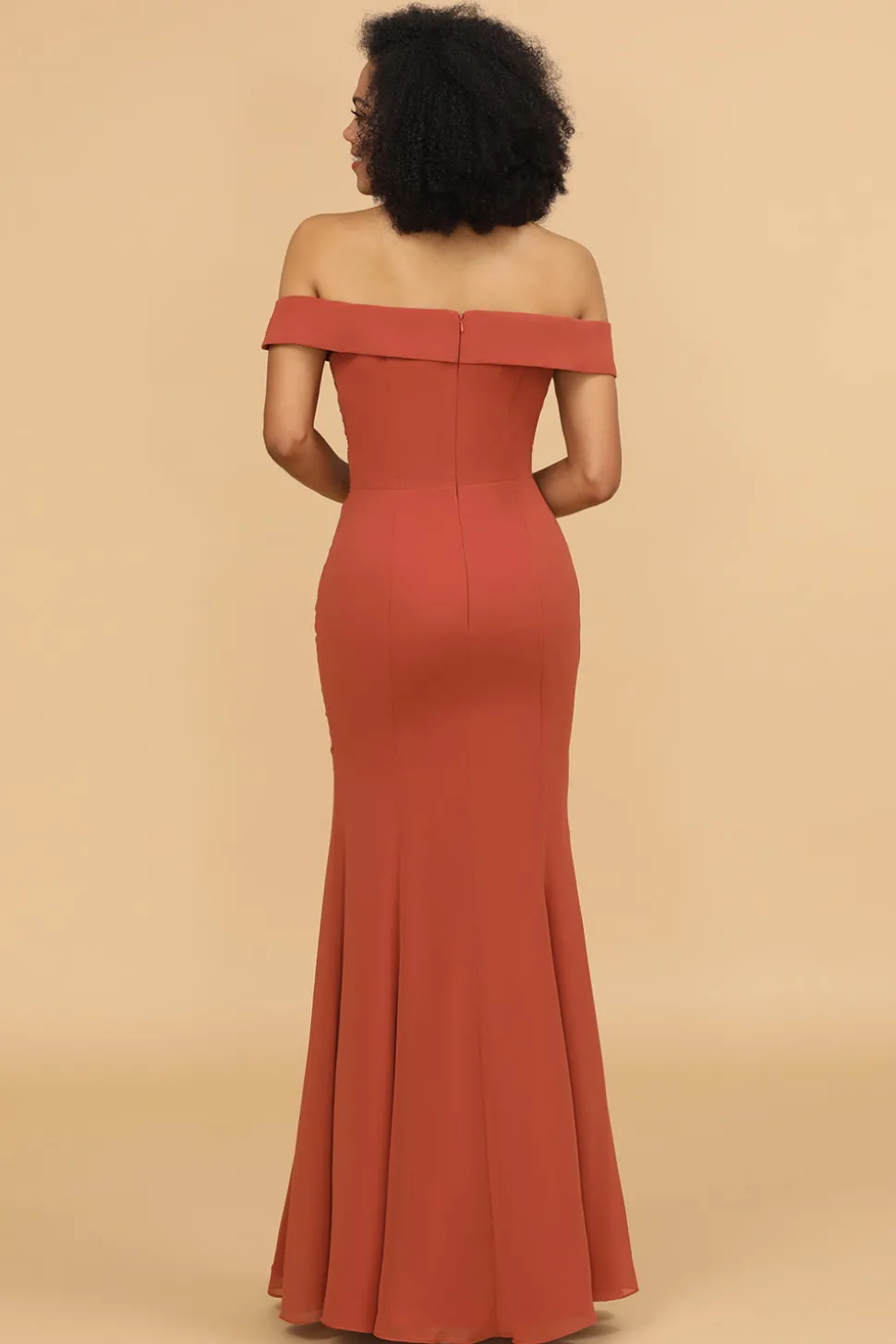 A Line Off the Shoulder Royal Blue Prom Dress with Split Front
