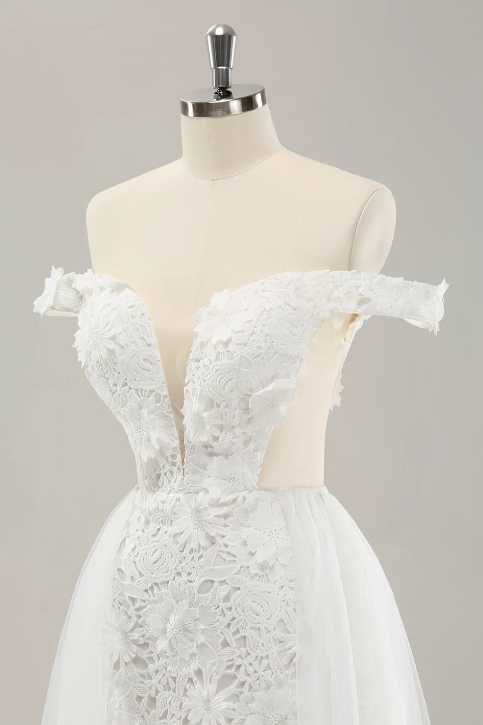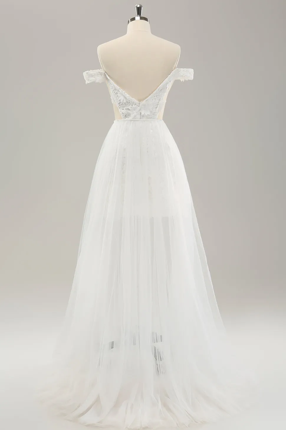 A Line Off the Shoulder Royal Blue Prom Dress with Split Front