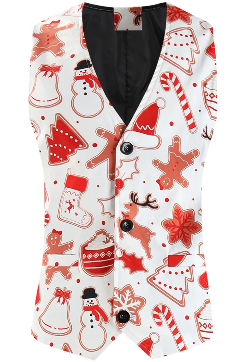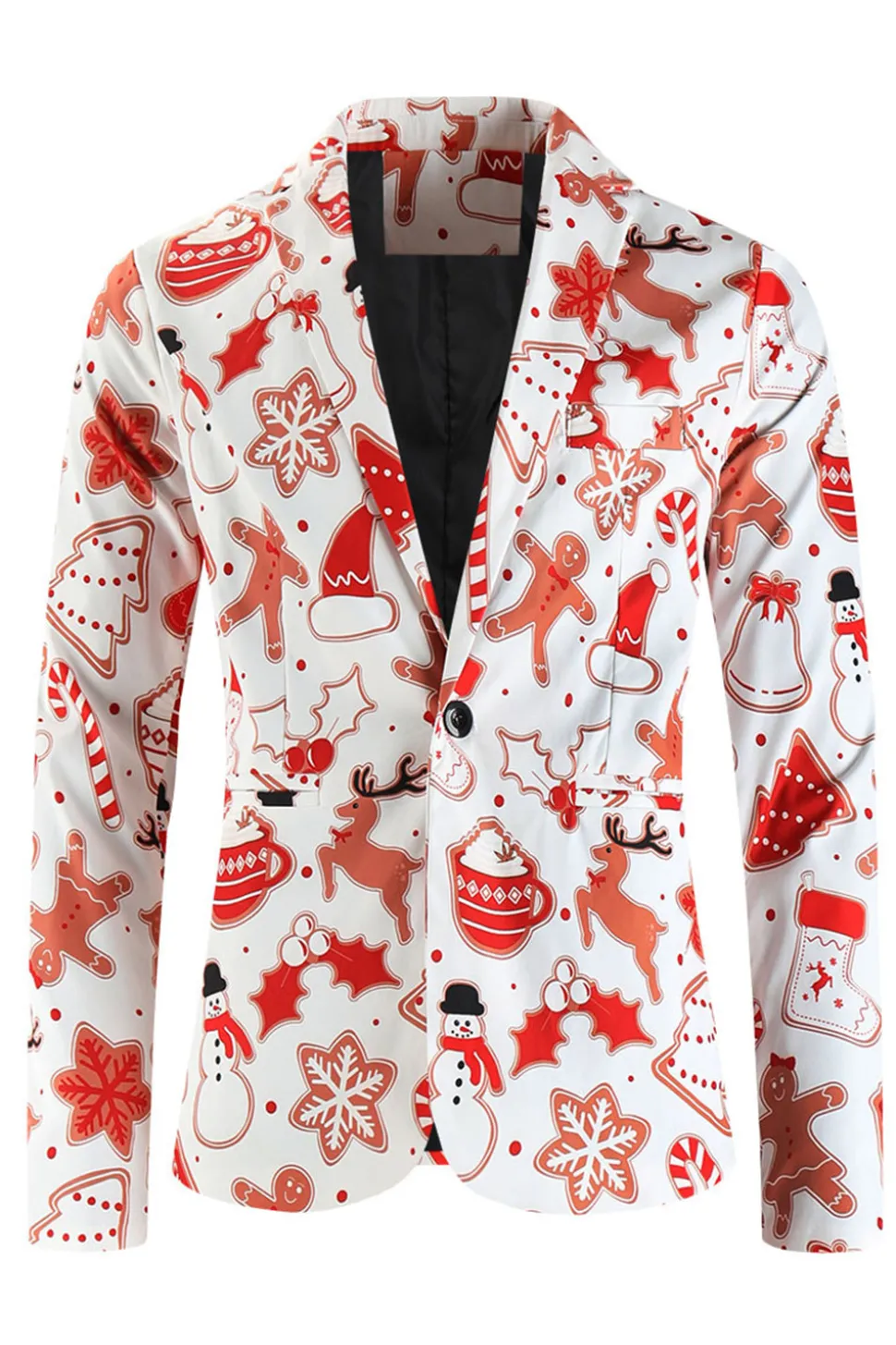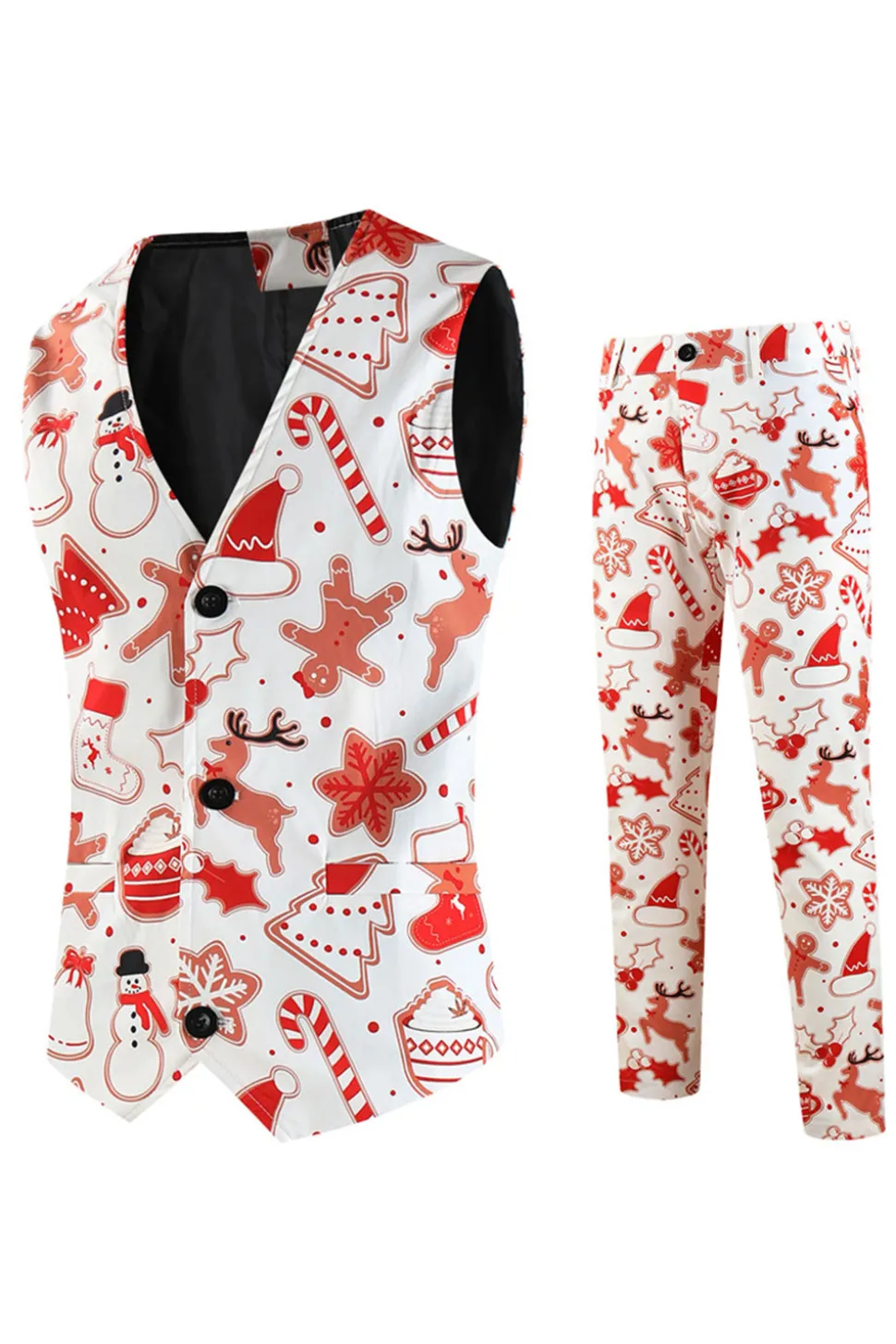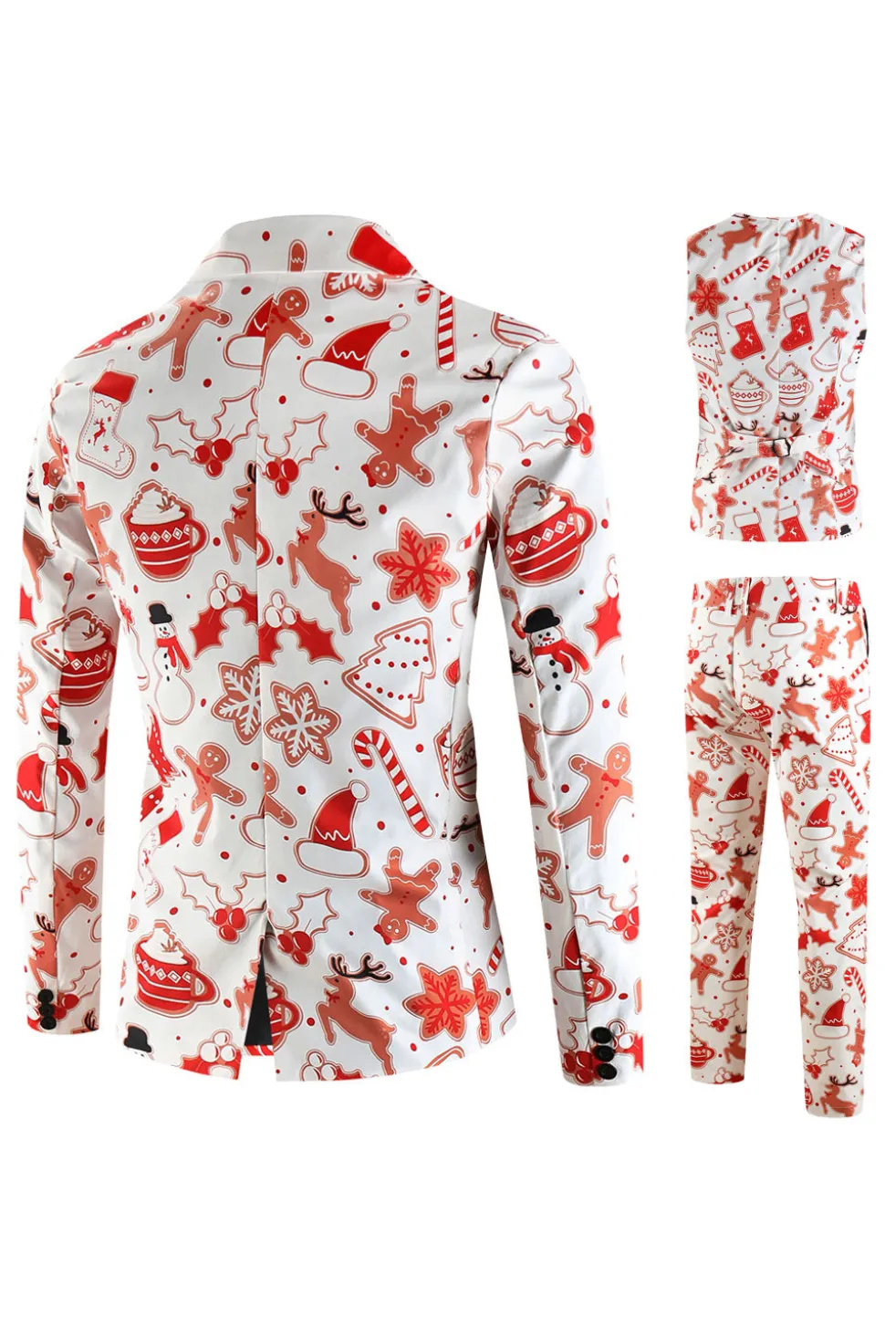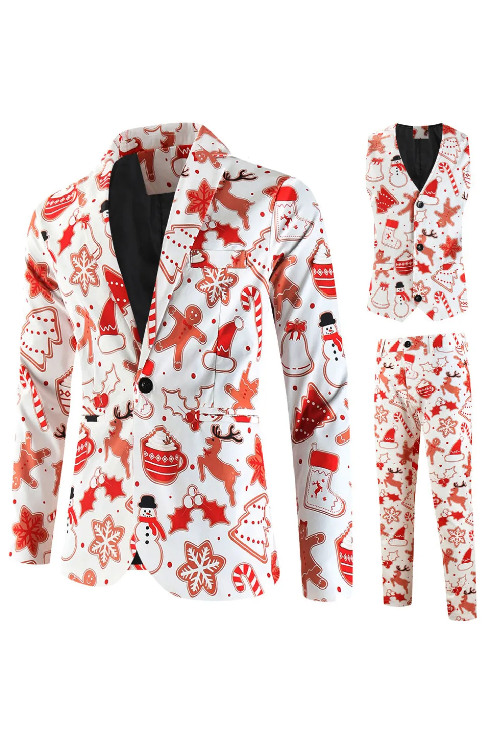 White Snowflake Snowman Printed 3 Pieces Men's Christmas Party Suits