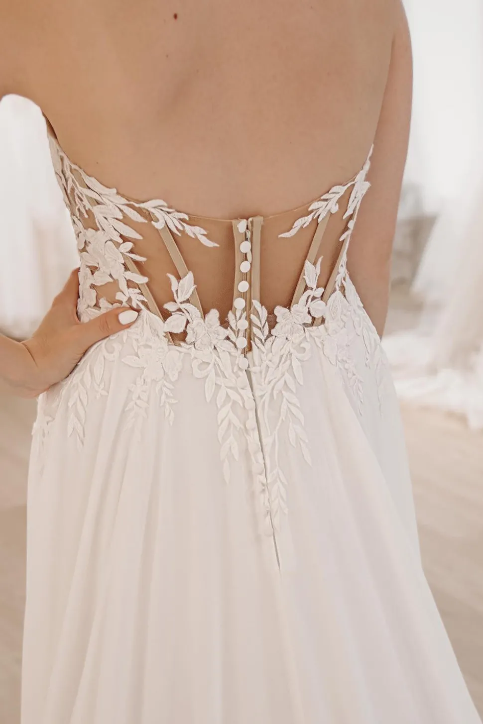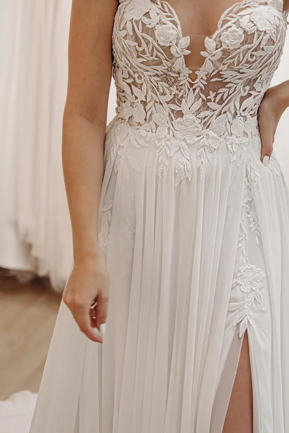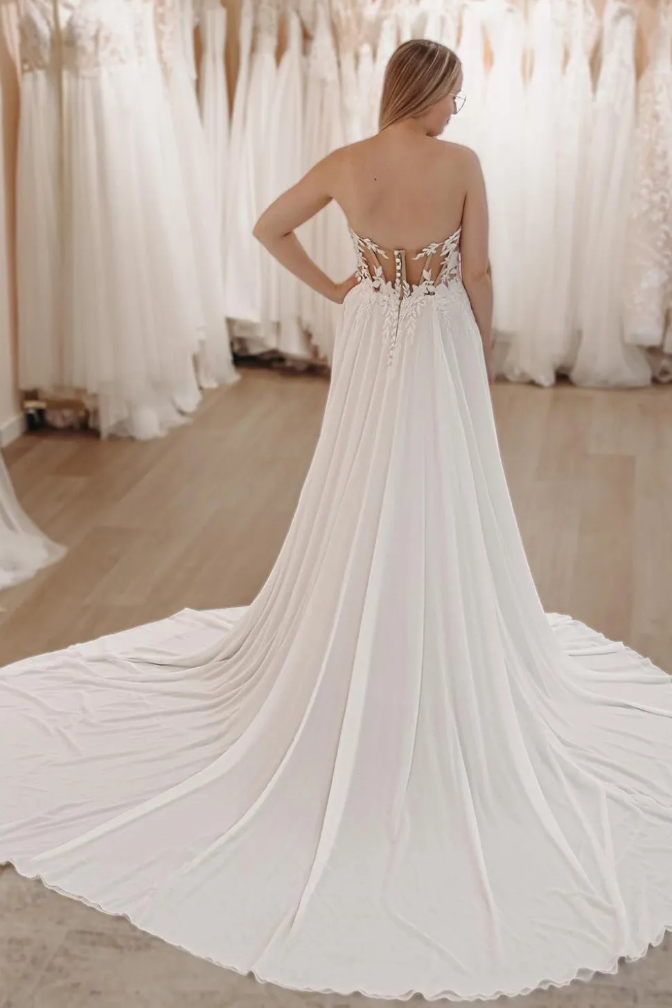 White Sweetheart Long Lace Boho Wedding Dress with Slit