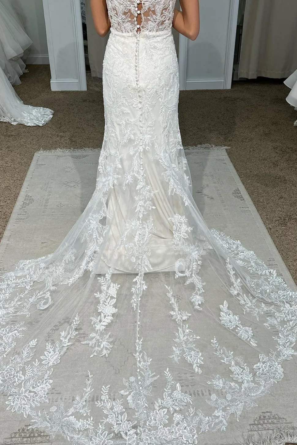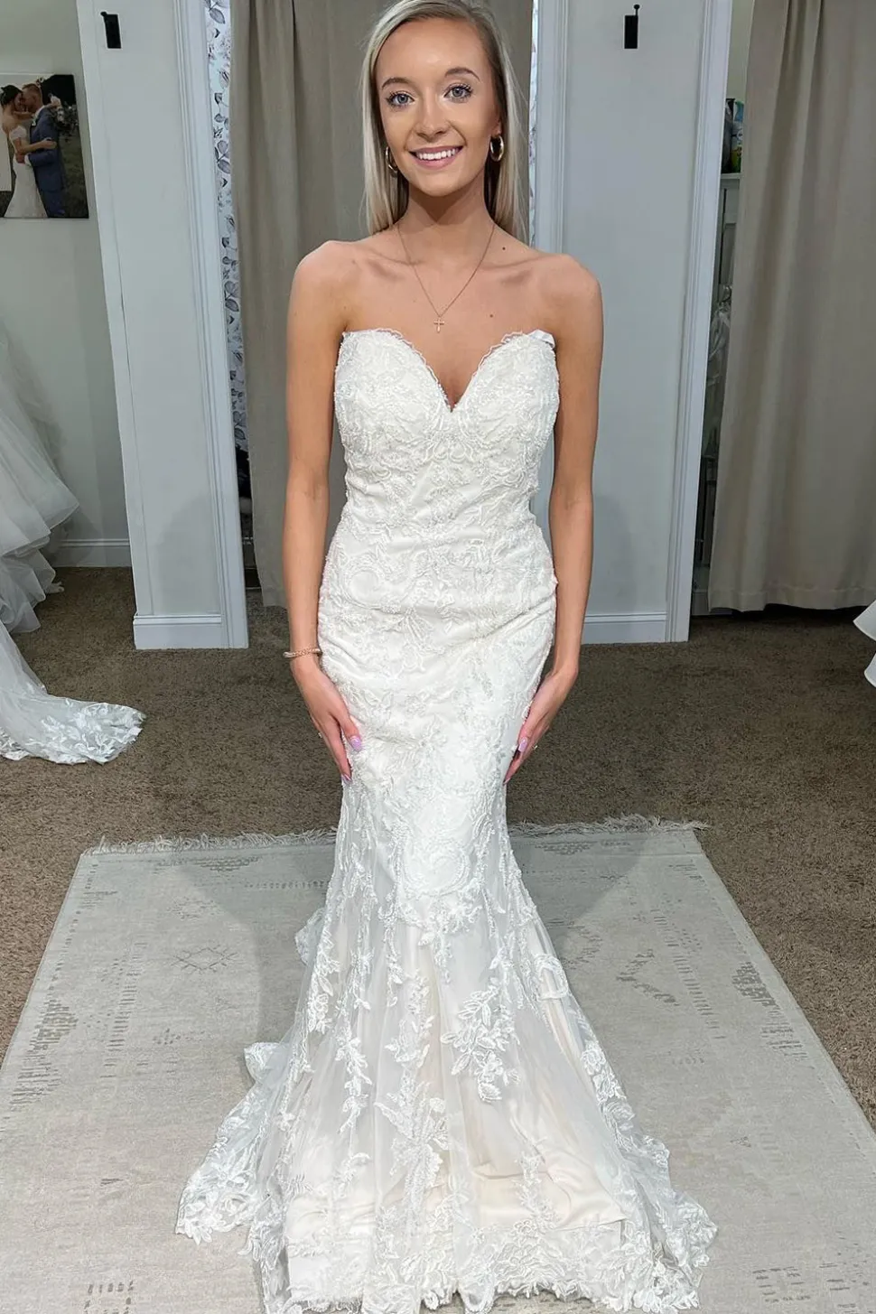 White Sweetheart Mermaid Long Lace Wedding Dress