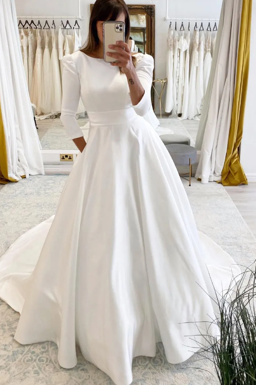 Be the first to review “White Vintage A-Line Long Satin Wedding Dress with Pockets” Cancel reply